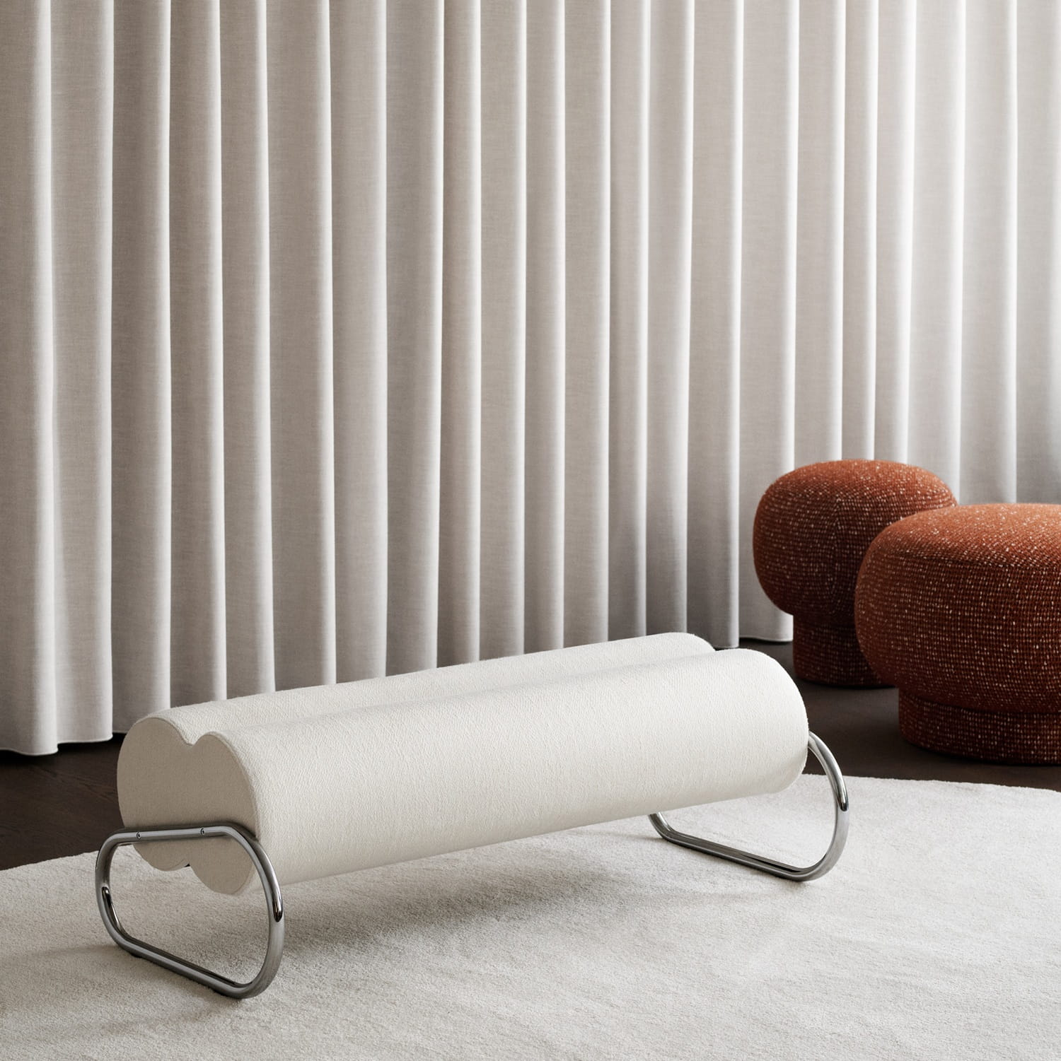 Projekt Fave nawiązuje do estetyki lat 80., jednak interpretuje ją w sposób subtelny i współczesny. Rama ma zaokrągloną, czystą linię, dzięki czemu ławka wygląda lekko i harmonijnie. Forma jest wyważona – obecna we wnętrzu, ale nienarzucająca się wizualnie.