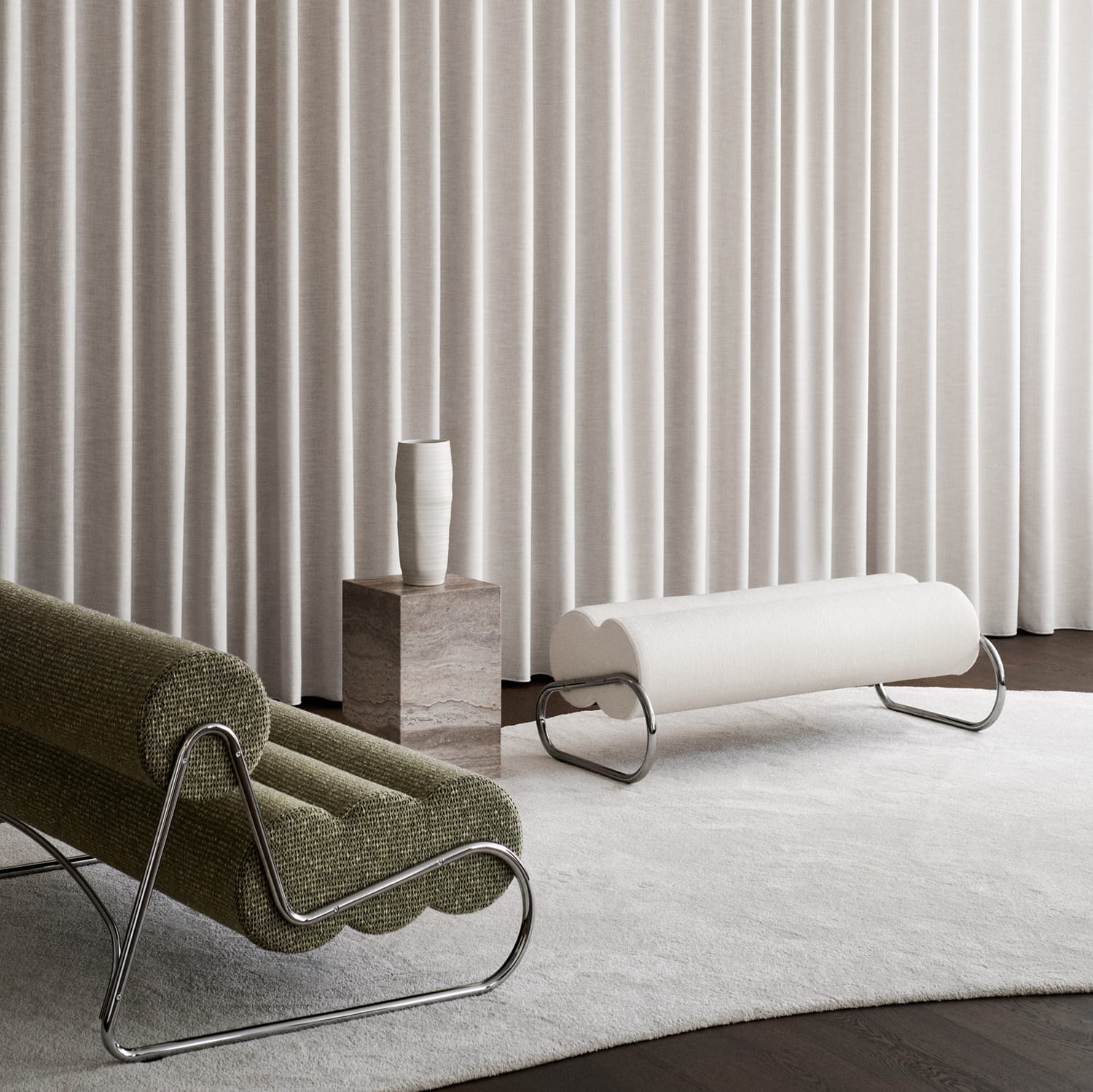 Projekt Fave nawiązuje do estetyki lat 80., jednak interpretuje ją w sposób subtelny i współczesny. Rama ma zaokrągloną, czystą linię, dzięki czemu ławka wygląda lekko i harmonijnie. Forma jest wyważona – obecna we wnętrzu, ale nienarzucająca się wizualnie.