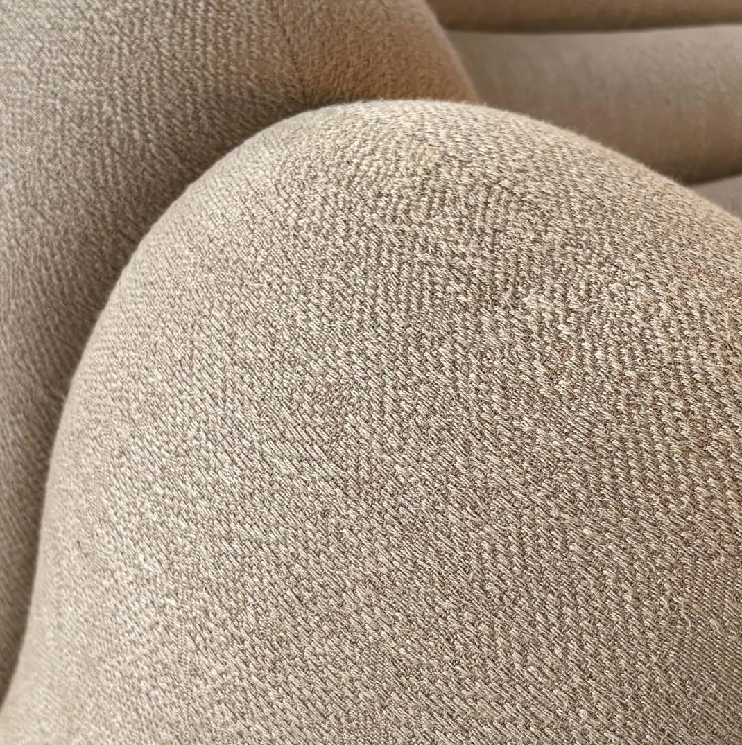 Zastosowana tapicerka Keiga marki Sahco to tkanina o wyjątkowej głębi i naturalnej elegancji, inspirowana nordyckim krajobrazem i jego zróżnicowaną fakturą. Jej subtelnie zniuansowana struktura sprawia, że doskonale odnajduje się w niemal każdym stylu aranżacji – od jasnych, skandynawskich wnętrz, przez nowoczesne i organiczne formy, aż po bardziej klasyczne czy art déco. Mieszanka czystej wełny, wiskozy i lnu nadaje jej szlachetny, naturalny charakter, a jednocześnie zapewnia przyjemny komfort użytkowania i wysoką trwałość. Keiga to tapicerka klasy premium – ponadczasowa, uniwersalna i odporna na intensywne użytkowanie, co potwierdza wysoka odporność na ścieranie oraz certyfikaty środowiskowe Greenguard Gold i HPD.