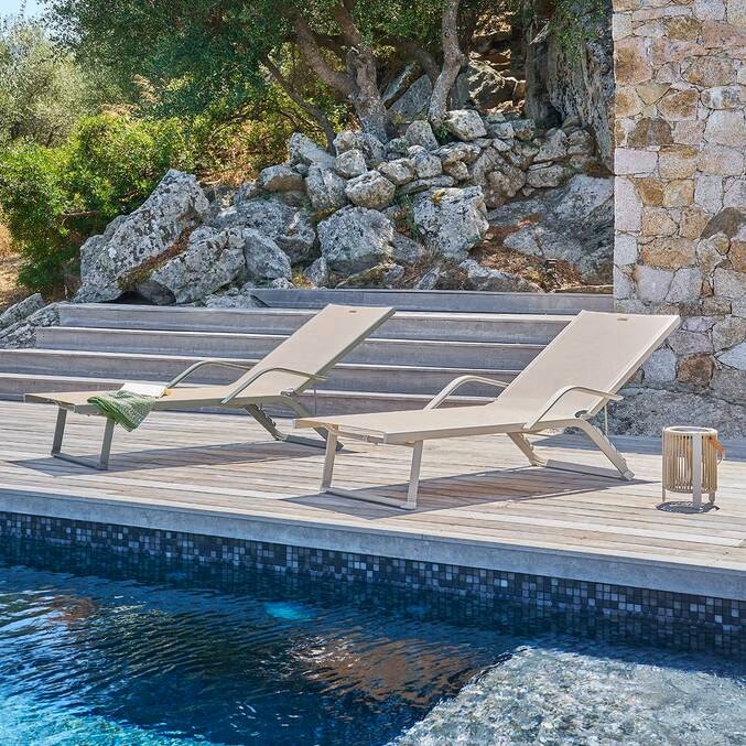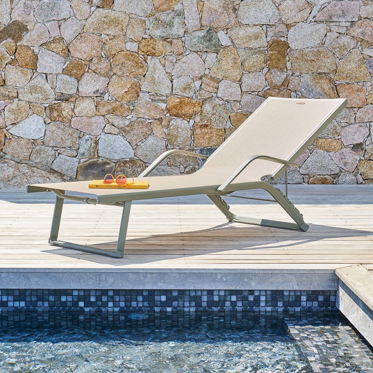 Elegancki i wygodny leżak ogrodowy rozkładany na płasko Bayamo marki Hesperide, to minimalistyczny leżak, który ma aluminiową konstrukcję pokrytą żywicą epoksydową, która wytrzymuje letnie deszcze, promieniowanie UV i rdzę.