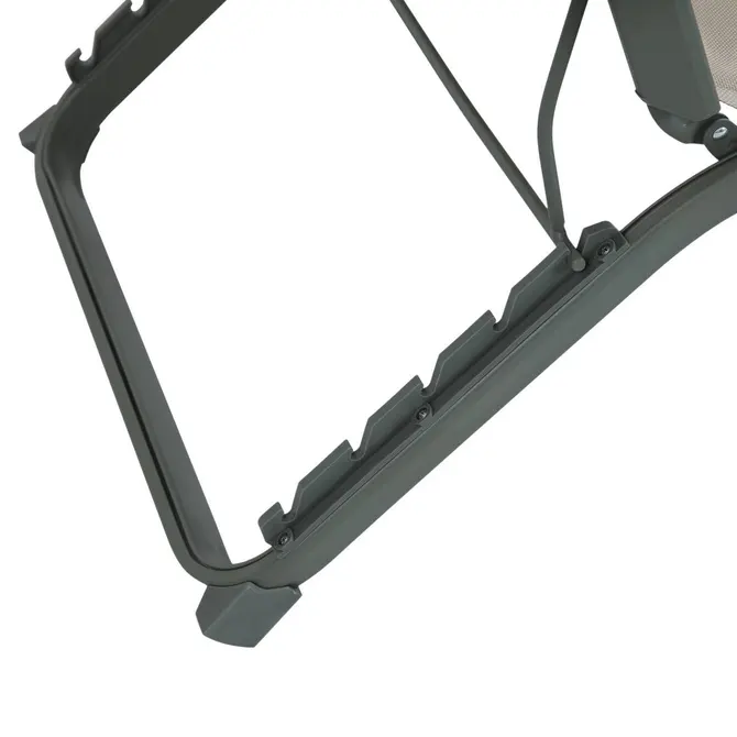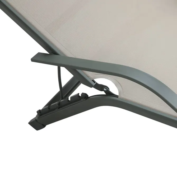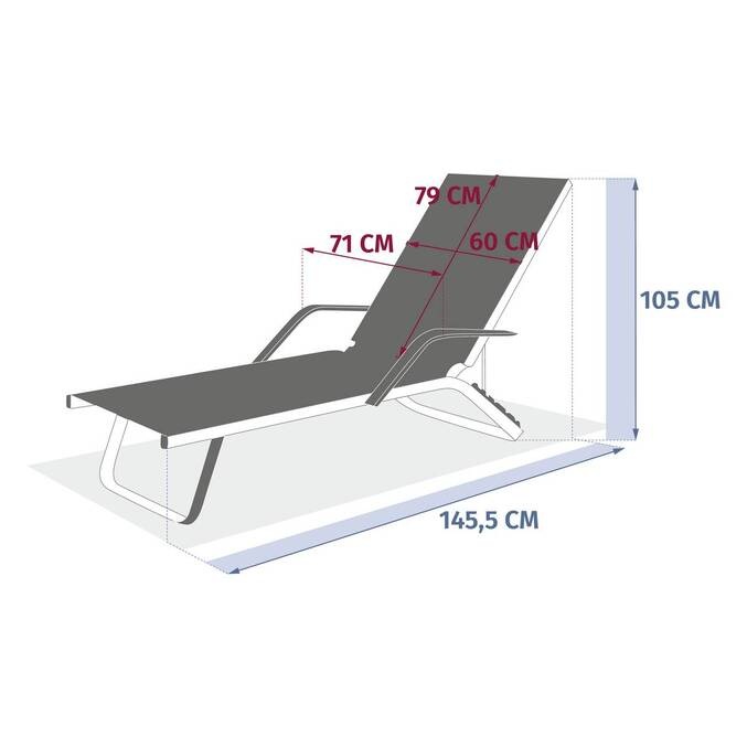 Oparcie rozkłada się w pięciu pozycjach, w tym w pozycji na płasko, a tkanina tego leżaka zapewnia komfort podczas użytkowania. Dodatkowej wygody dodają podłokietniki.