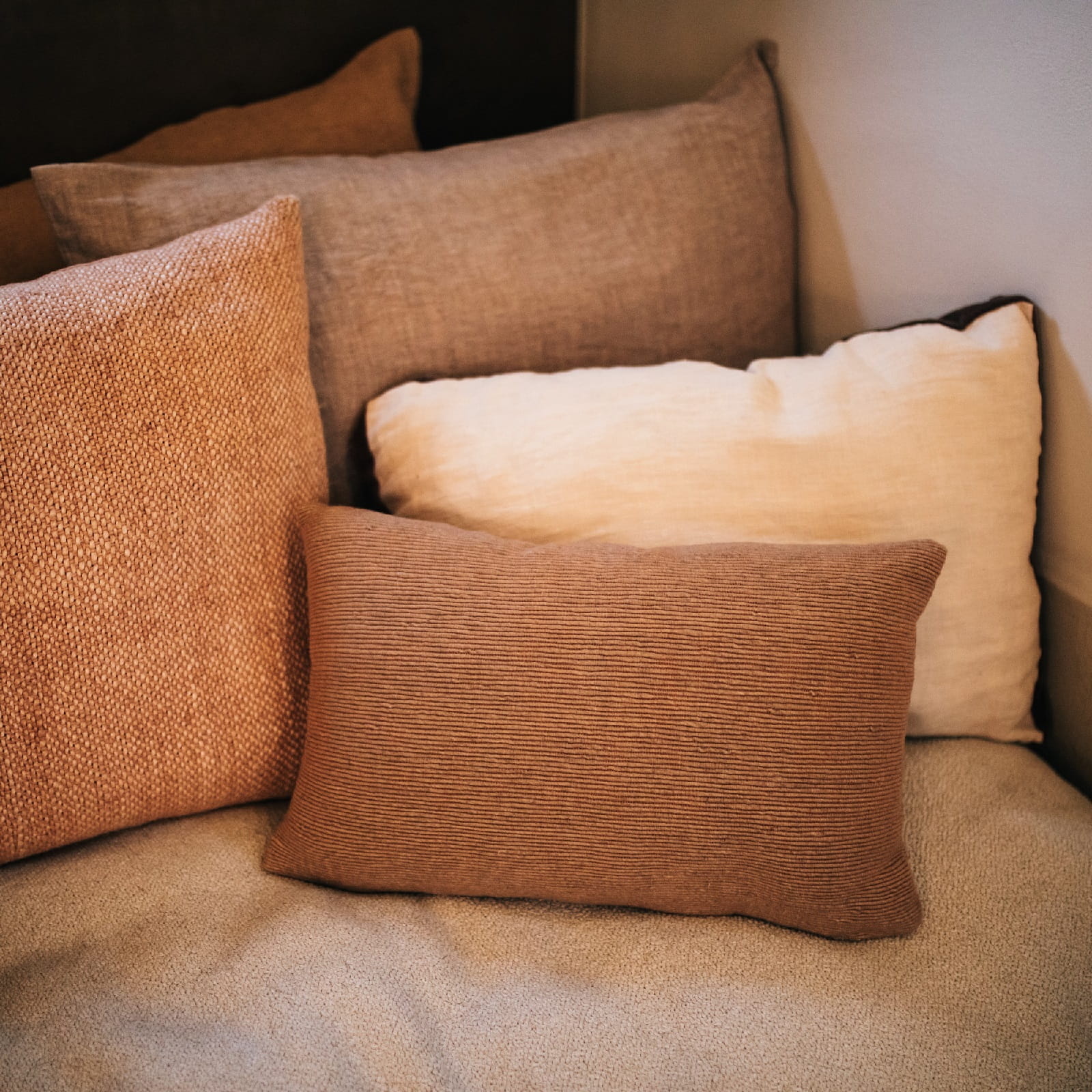 Fronty wykonane z lnu prezentują się subtelnie i ponadczasowo, natomiast boki w formie paneli wykończone welurem dodają całości wyrafinowanego i przytulnego charakteru. Ten kontrast faktur sprawia, że poduszka nie tylko zdobi wnętrze, ale także wprowadza do niego poczucie luksusu i komfortu, oryginalności.