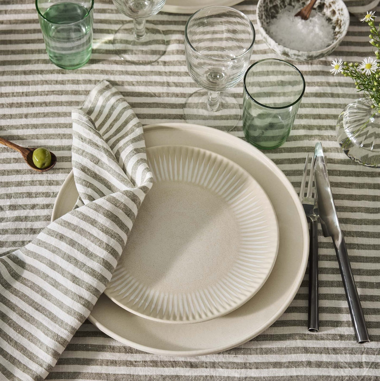 Lniany obrus w paski Leon 145x145, Seagrass - Tell Me More