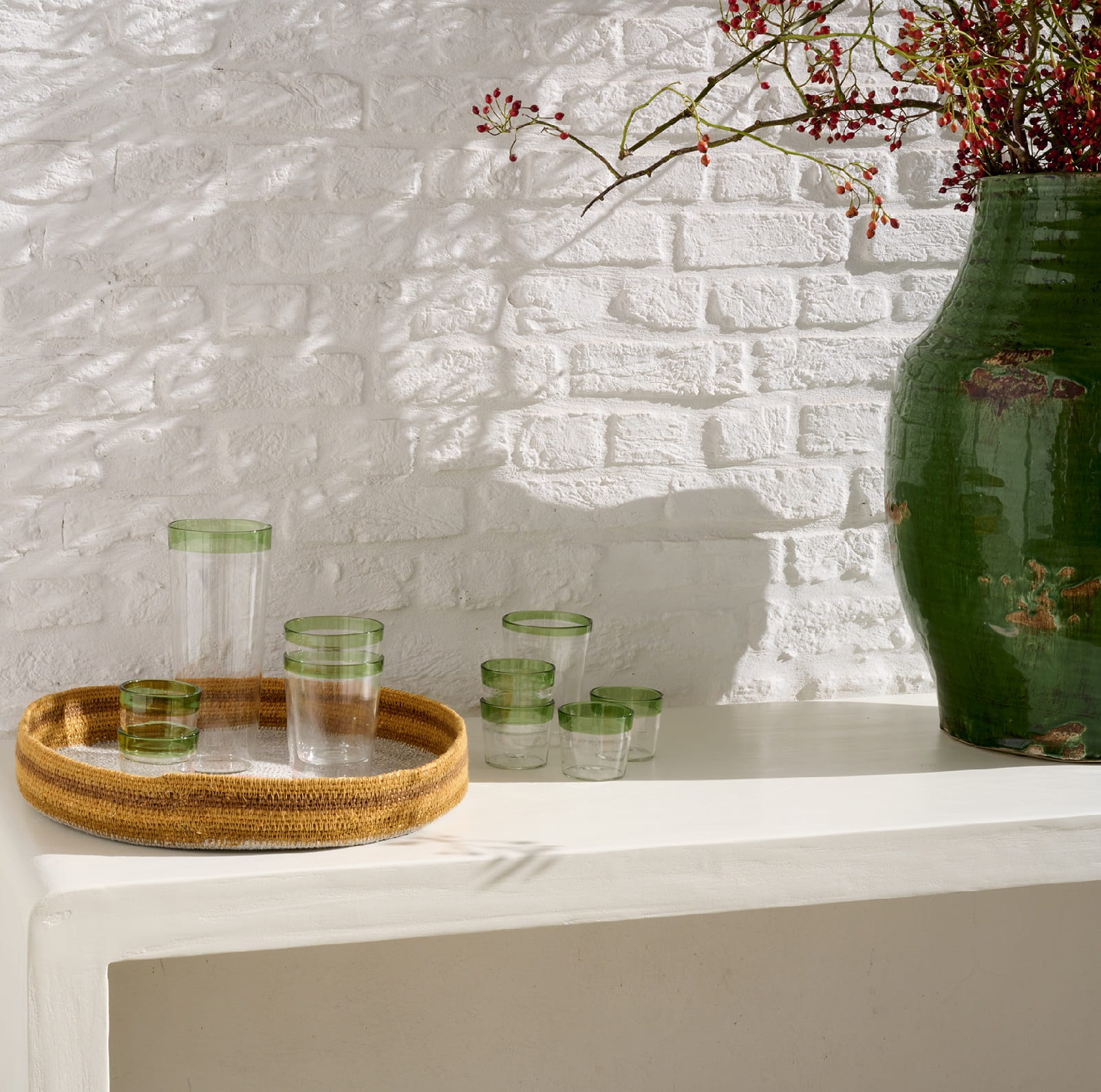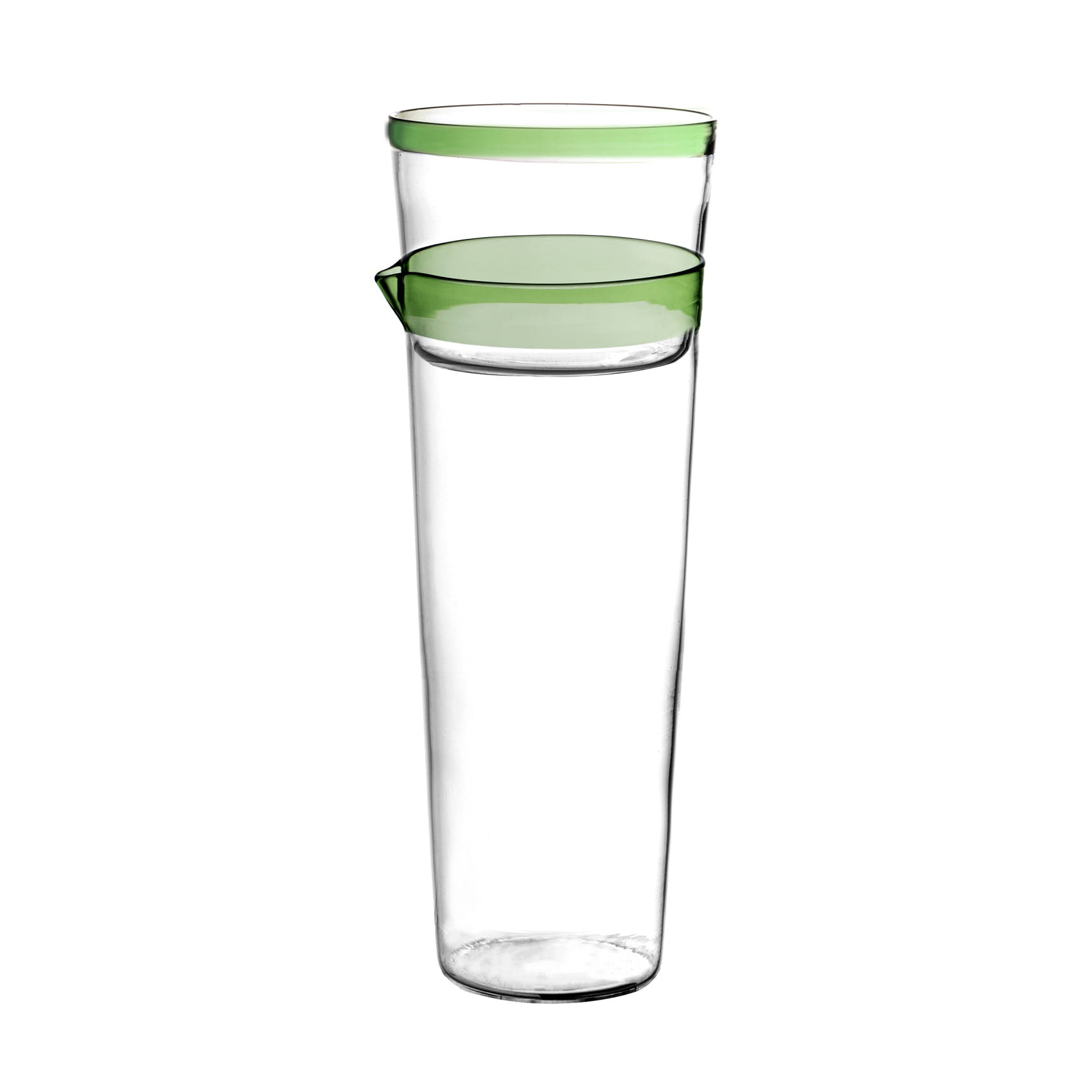 Wykonana z najwyższej jakości szkła borokrzemowego karafka o pojemności 600 ml zachwyca kolorowym zielonym paskiem, barwionym w masie (który pojawia się na górze każdego elementu). Dzięki temu kolor pozostaje intensywny i głęboki przez lata, niezależnie od częstego mycia w zmywarce. Dmuchane ustnie szkło sprawia, że każda karafka Tarifa jest unikalna – niepowtarzalny detal, który nadaje mu artystycznego charakteru.