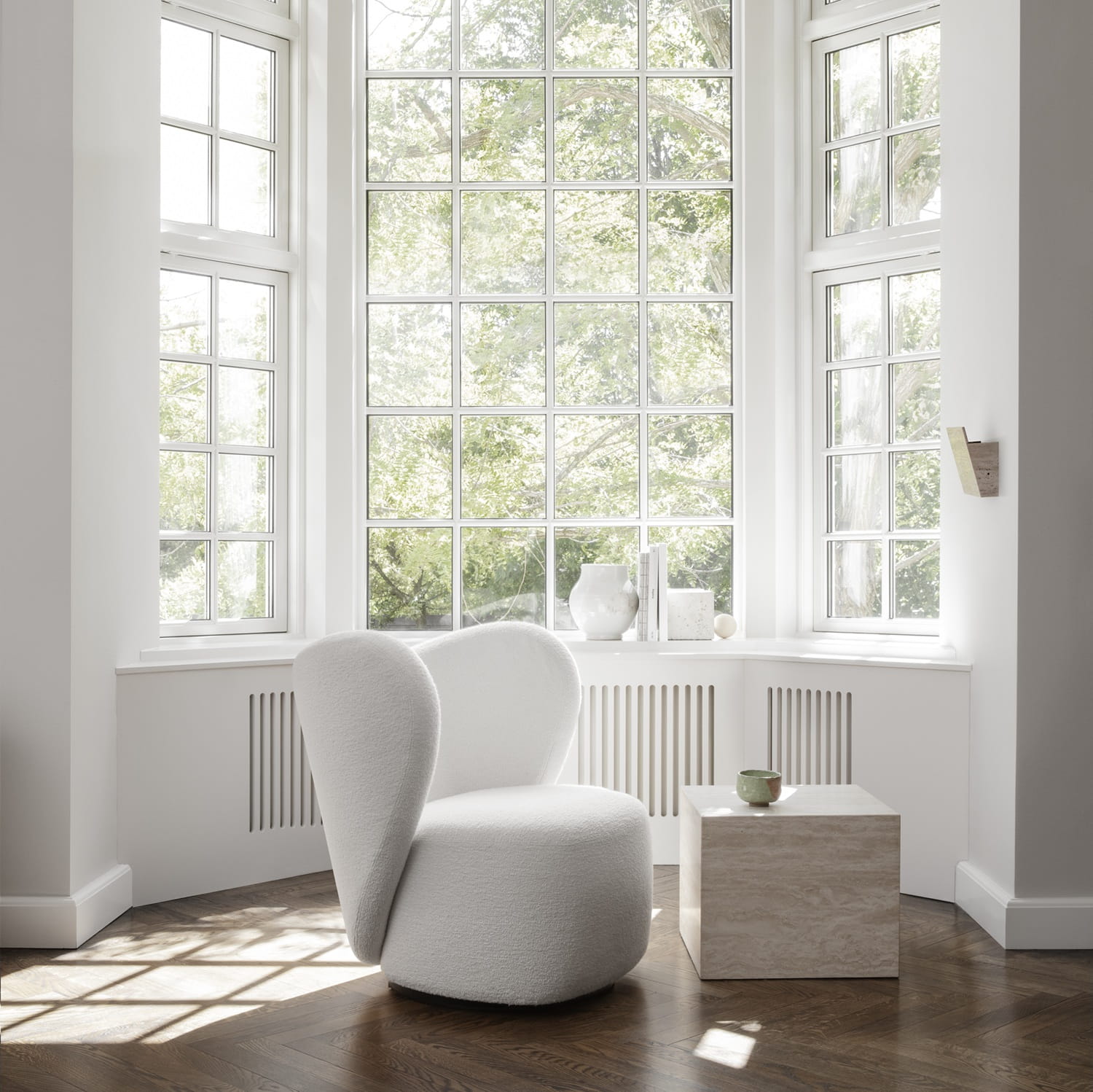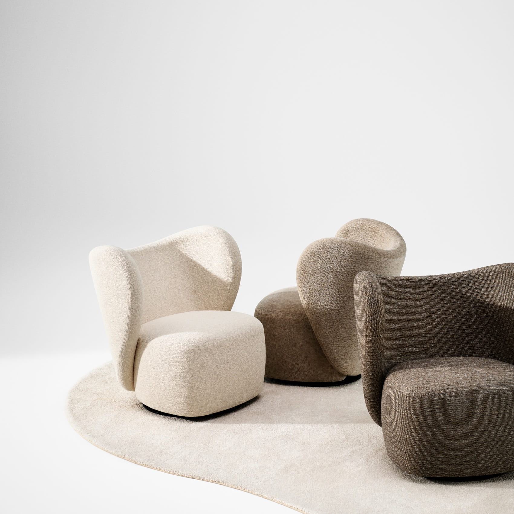 Little Big to mały fotel lounge, który sprawdza się zarówno w dużych salonach, jak i w mniejszych przestrzeniach. Jego organiczna, rzeźbiarska forma z miękkimi liniami prezentuje się lekko wizualnie, nie odbierając wnętrzu oddechu. Niskie, otulające oparcie oraz wygodne siedzisko zapewniają komfort nawet podczas dłuższego siedzenia, czytania lub rozmów.