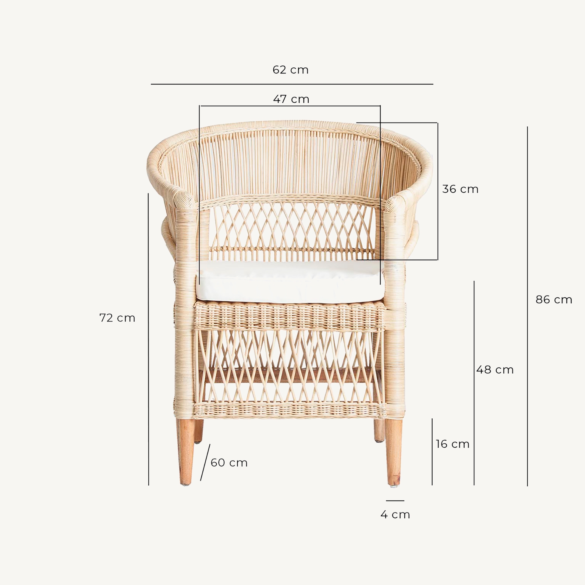 - Materiał: rattan, drewno mindi, bawełna, pianka