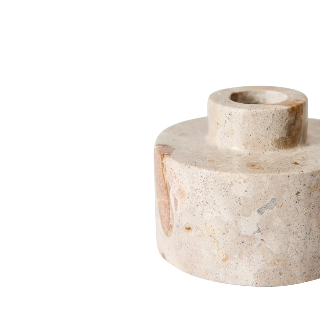 Wykonane z kremowego marmuru, świeczniki Vita emanują autentycznym, naturalnym pięknem. Ich unikalne wzory i różnorodność barw kamienia naturalnego sprawiają, że każdy egzemplarz jest jedyny w swoim rodzaju. Dzięki temu marmurowe świeczniki stają się nie tylko funkcjonalnym elementem, ale i luksusową dekoracją stołu, komody czy stolika bocznego.