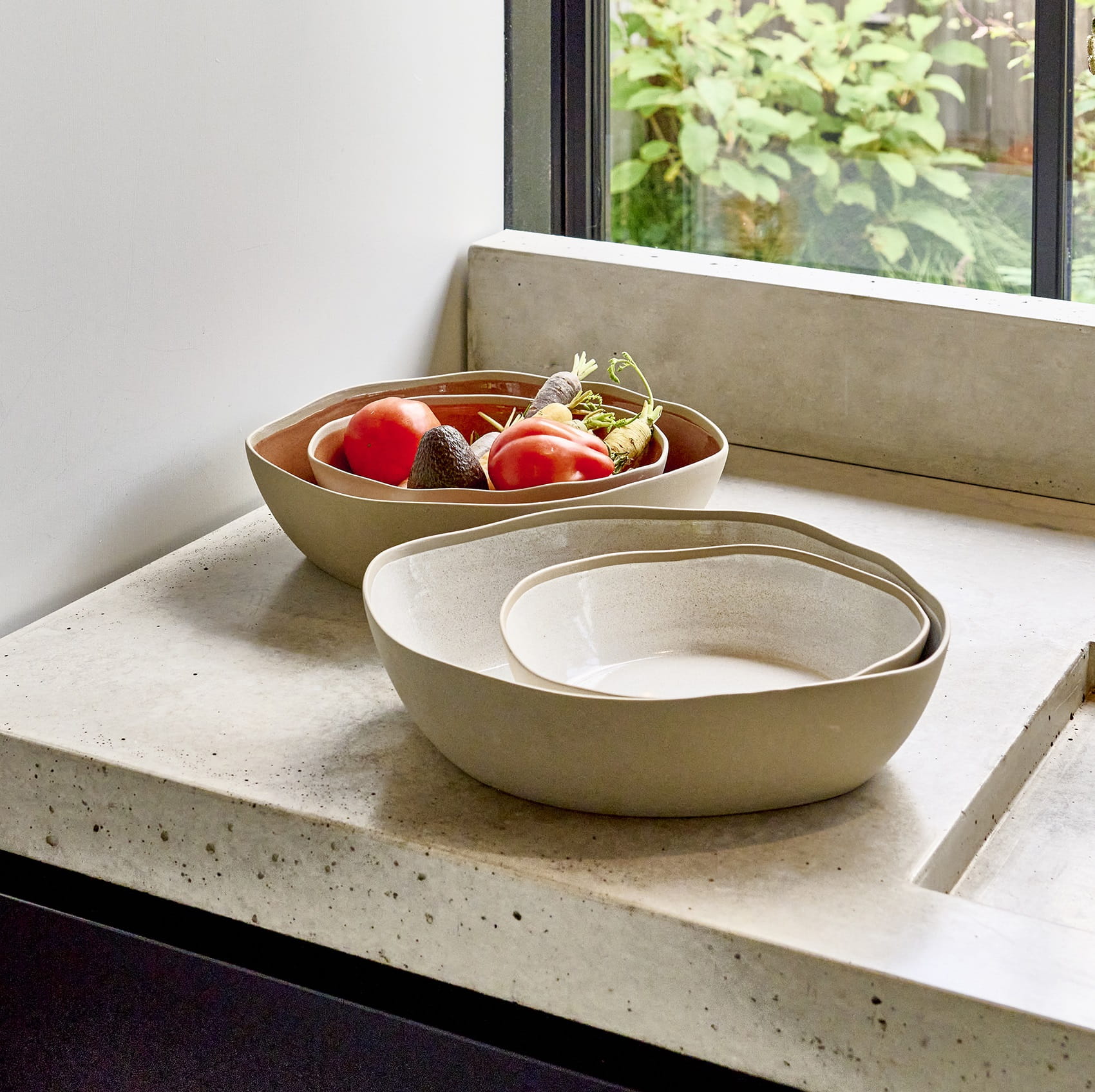 Porcelana Primeval wyróżnia się organiczną formą. Subtelne szkliwienie reaktywne wewnątrz nadaje każdemu naczyniu niepowtarzalny charakter. Matowa zewnętrzna powłoka w połączeniu z lekko nierówną, naturalną strukturą tworzy efekt inspirowany naturą, dzięki czemu każdy talerz jest jedyny w swoim rodzaju i doskonale eksponuje serwowane potrawy, podkreślając ich kolory i tekstury.