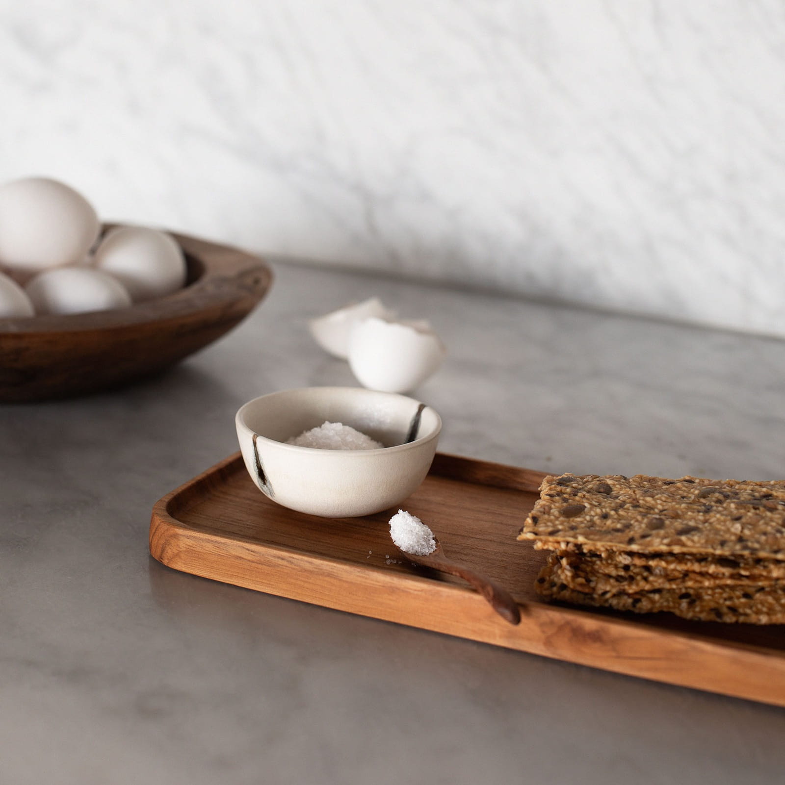 Seria Toledo łączy ręczne rzemiosło z nowoczesnym designem. Matowa powierzchnia w odcieniu złamanej bieli w połączeniu z wyrazistą linią tworzy harmonijną i stylową całość. Miseczki pięknie komponują się z innymi elementami kolekcji Toledo, a także z seriami Tell Me More – Centro w kolorze Wheat czy Granada – pozwalając tworzyć spójne i efektowne aranżacje stołowe.