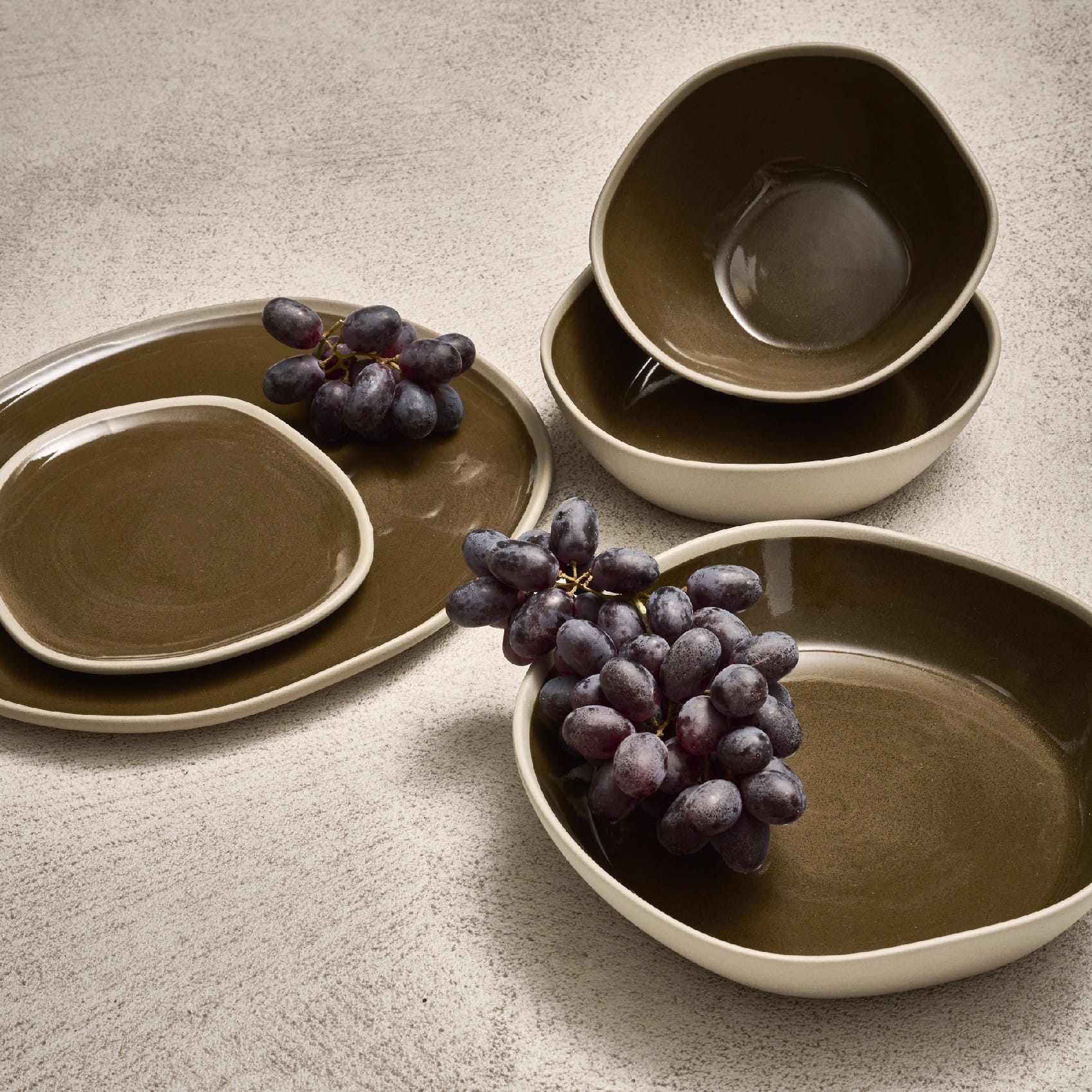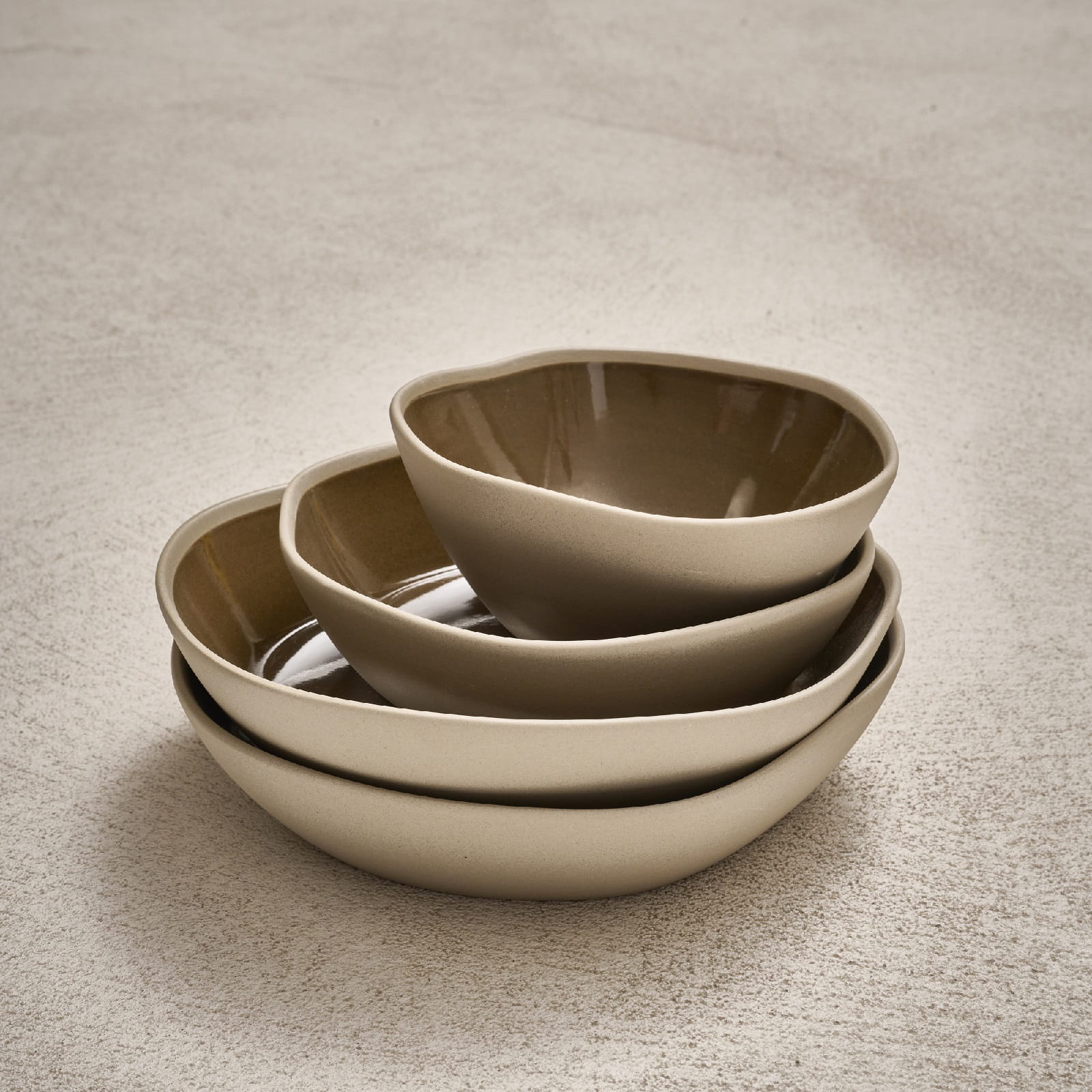 Organiczny charakter porcelany Primeval sprawia, że każda miska jest niepowtarzalna. Wewnętrzne szkliwienie reaktywne nadaje jej unikalny charakter kolorystyczny, podczas gdy matowa, lekko nierówna powierzchnia zewnętrzna podkreśla inspirację naturą. To połączenie sprawia, że miski do zup nie tylko eksponują serwowane potrawy, ale także nadają aranżacji stołu wyjątkowej głębi i harmonii.