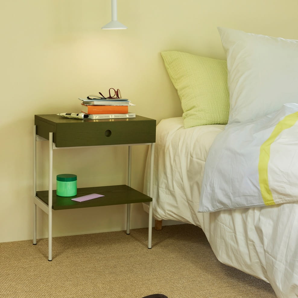 Stolik nocny z szufladą i półką Noir, zielony - Hubsch