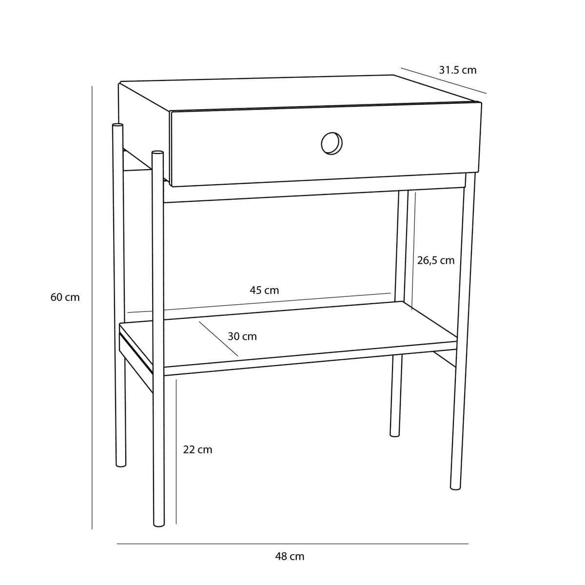 Stolik Noir ma wymiary 48 × 32 × wys. 60 cm i idealnie dopasowuje się do większości łóżek, oferując komfortowy dostęp do najważniejszych przedmiotów. Odległość między półkami wynosi 26 cm, zapewnia to stabilność, lekkość formy i swobodny dostęp do przestrzeni pod meblem. Waży 7,4 kg, co czyni go łatwym do ustawienia, a jednocześnie wystarczająco solidnym. Maksymalne obciążenie półki wynosi 15 kg, co pozwala na jej swobodne wykorzystanie.