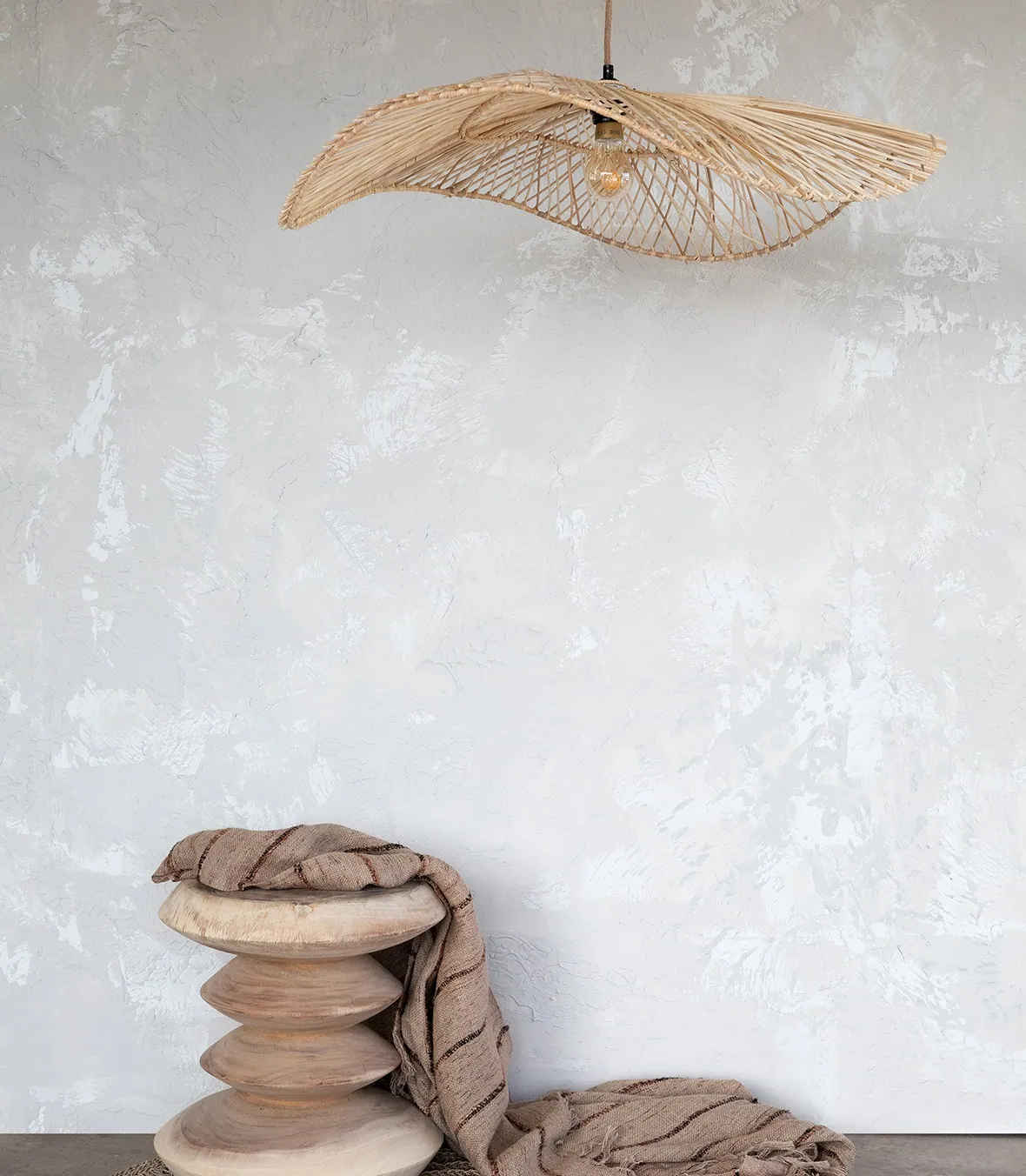 Piękny abażur rattanowy do lamp wiszących, przyciąga wzrok, a jego naturalny kolor wnosi do wnętrza aurę naturalności, autentyczności.