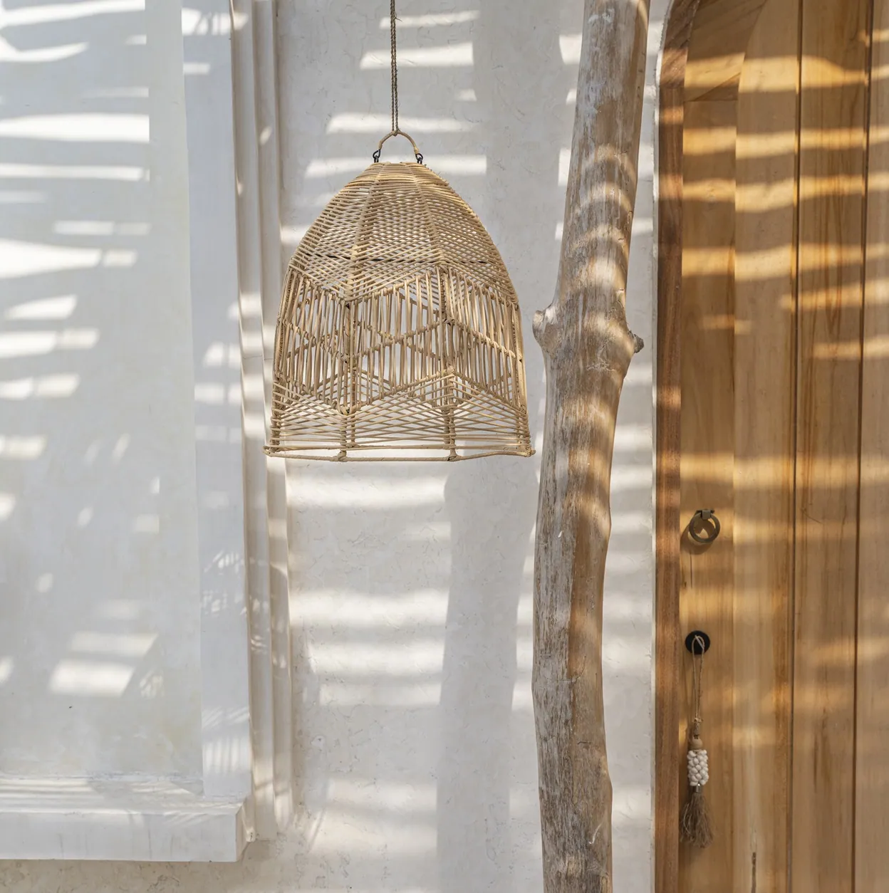 Ażurowy abażur rattanowy do lamp sufitowych wiszących Bala M, naturalny - Bazar Bizar