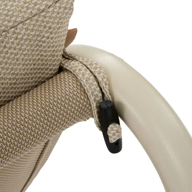 Elastyczne siedzisko (texaline) pracuje z ciałem, a szerokie podłokietniki stabilizują pozycję. To ergonomiczny fotel ogrodowy typu lounge, zaprojektowany do długiego odpoczynku, nie krótkiego siedzenia.