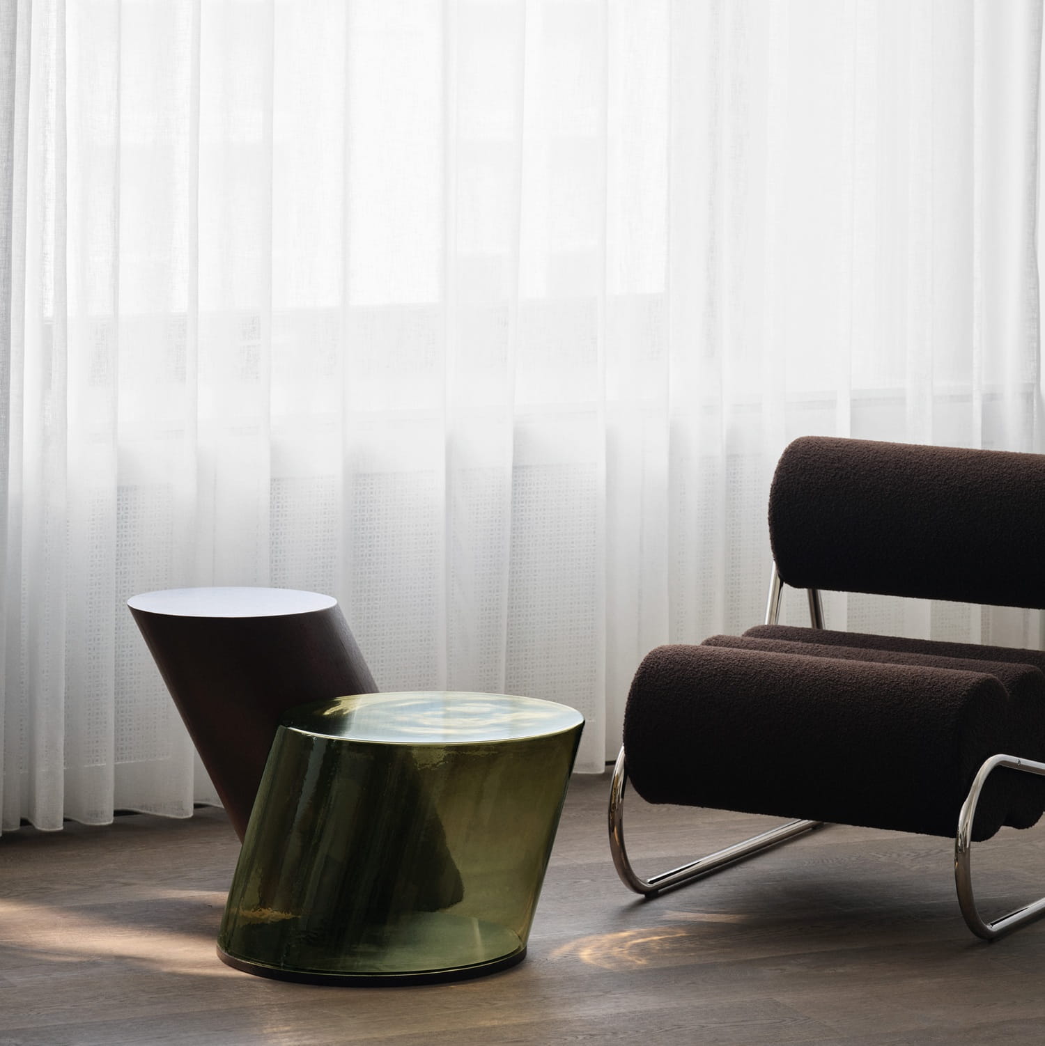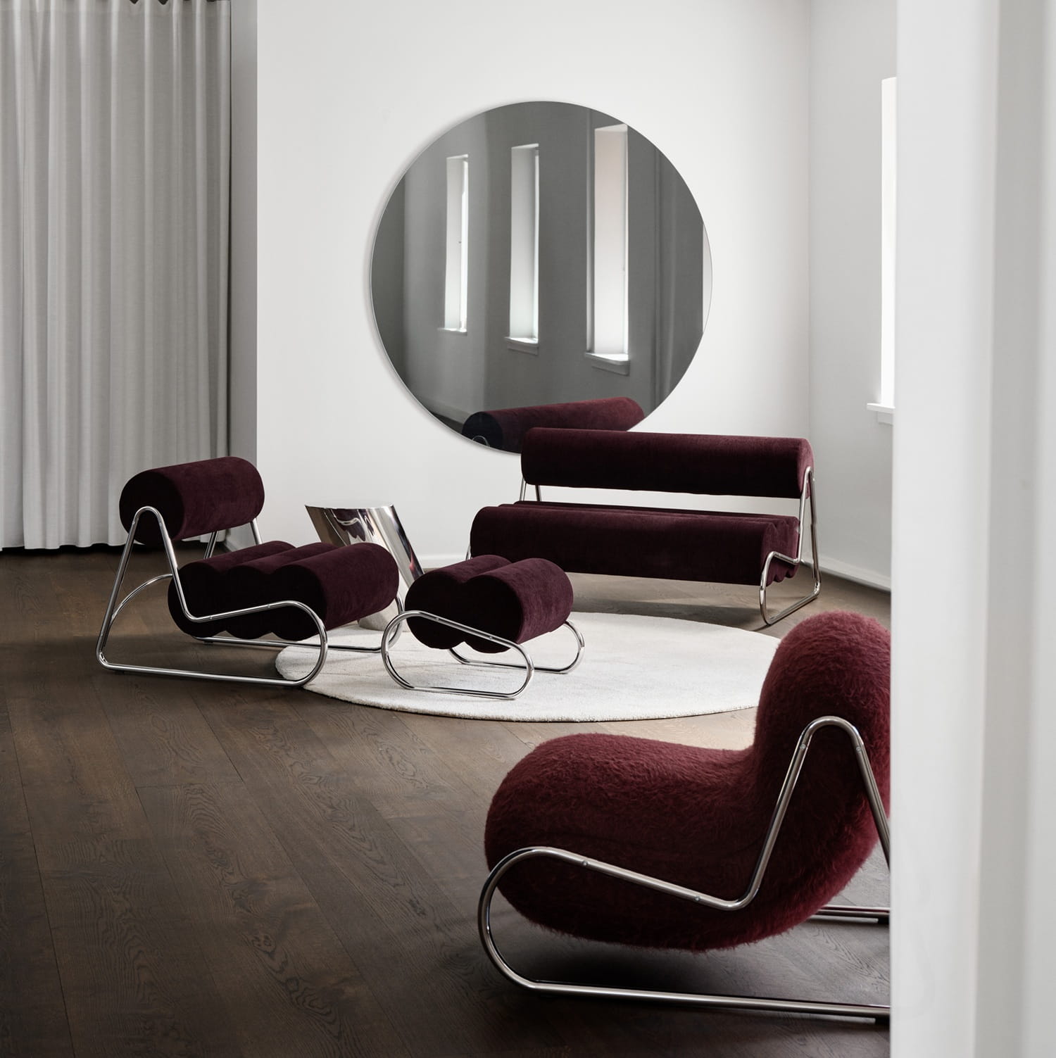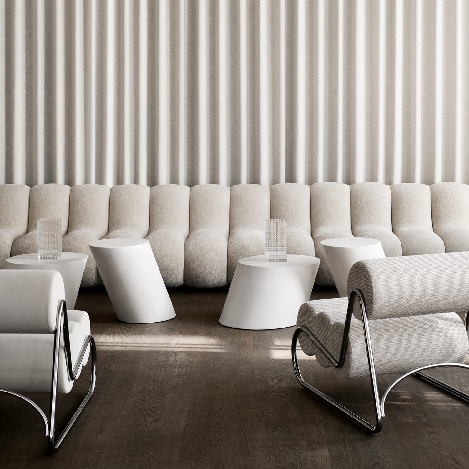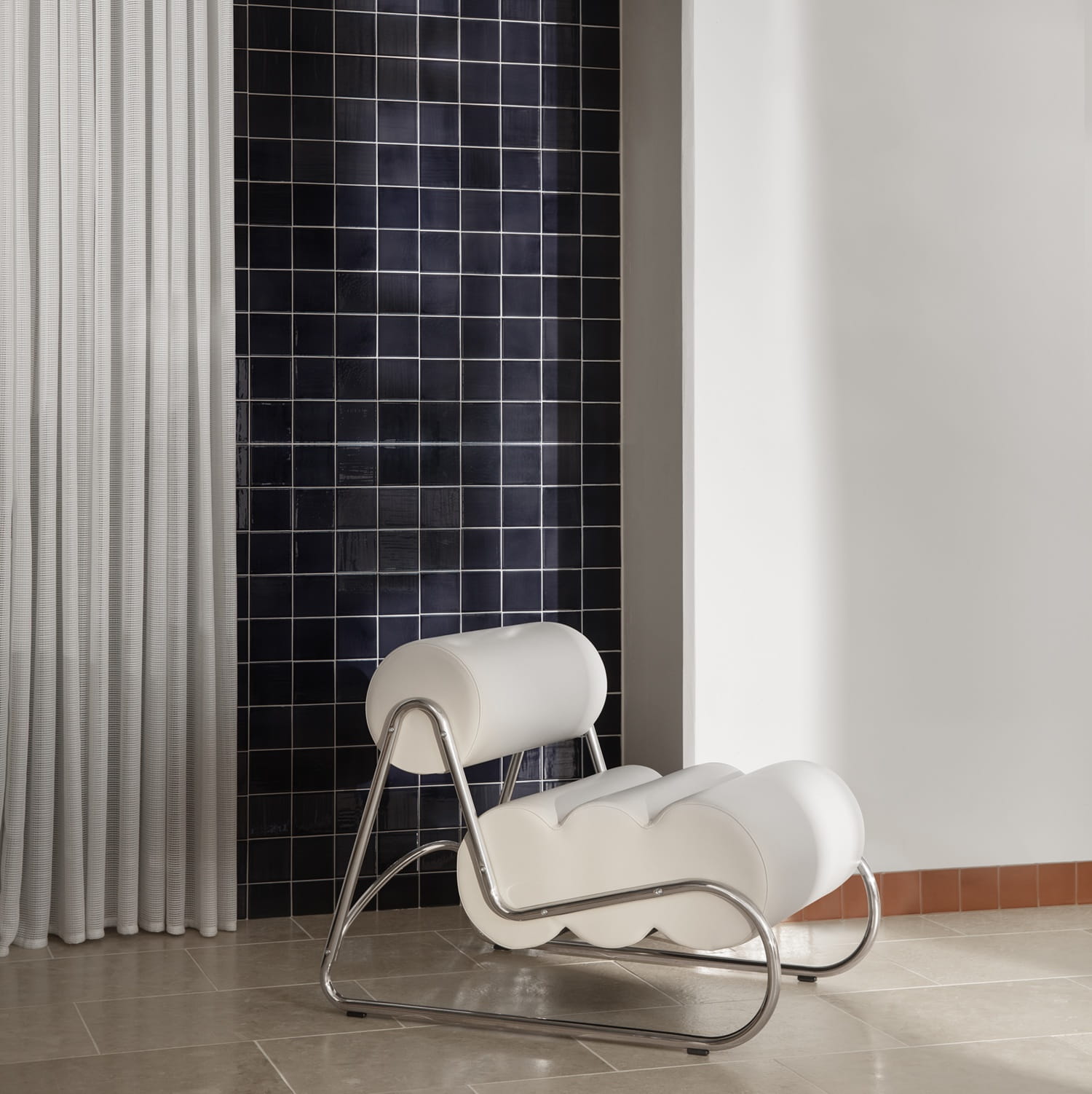 Siedzisko fotela Fave składa się z trzech "listew" połączonych w jedną dużą, wygodną poduszkę, która równomiernie rozkłada ciężar ciała i pozwala na naturalne ułożenie nóg. Niskie, cylindryczne oparcie subtelnie podtrzymuje plecy, zachęcając do swobodnych, półleżących pozycji siedzenia – idealnych do czytania, rozmów lub wieczornego odpoczynku.
