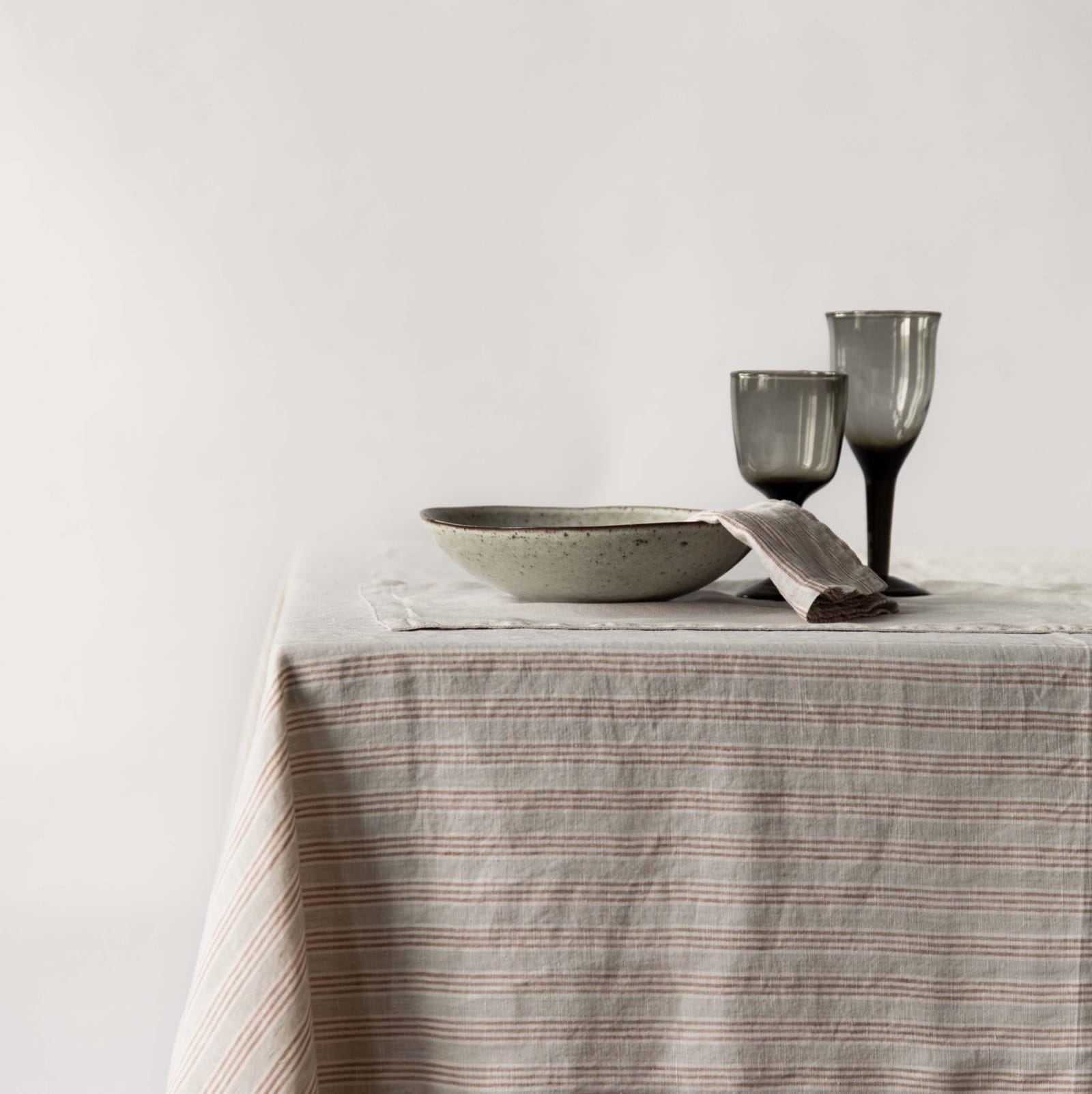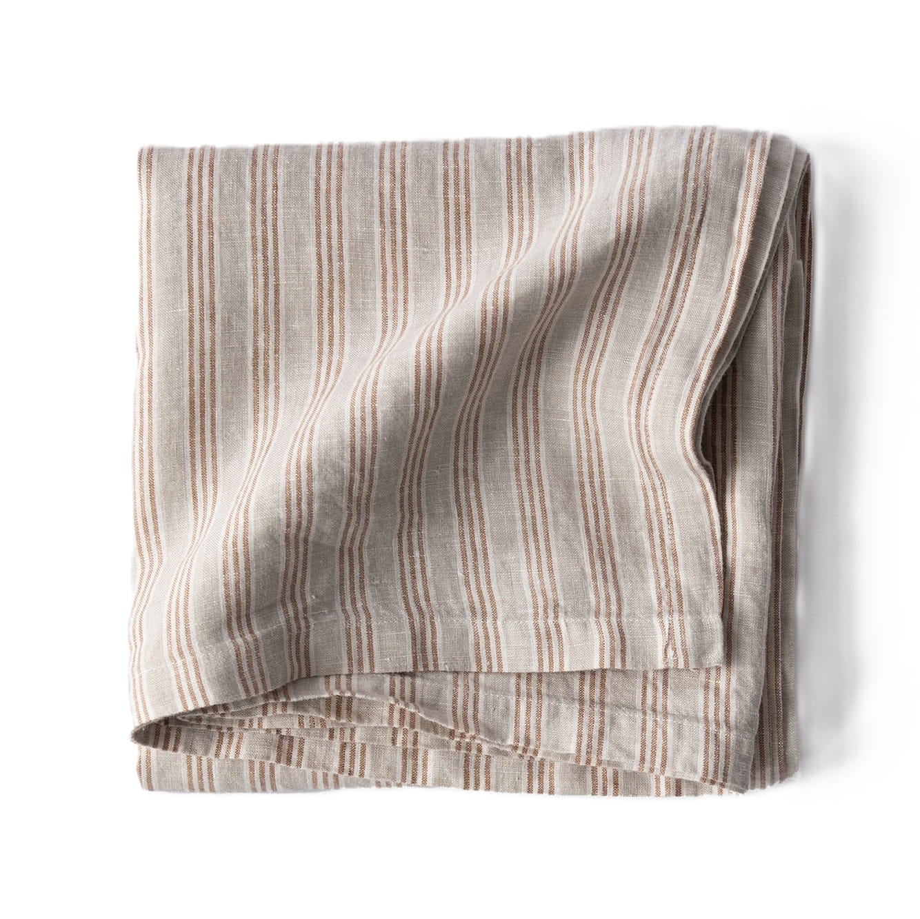 Obrus z miękkiego lnu stone washed 175x175, Hazelnut stripe - Tell Me More