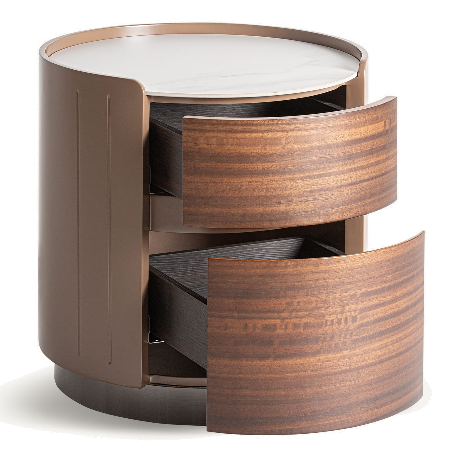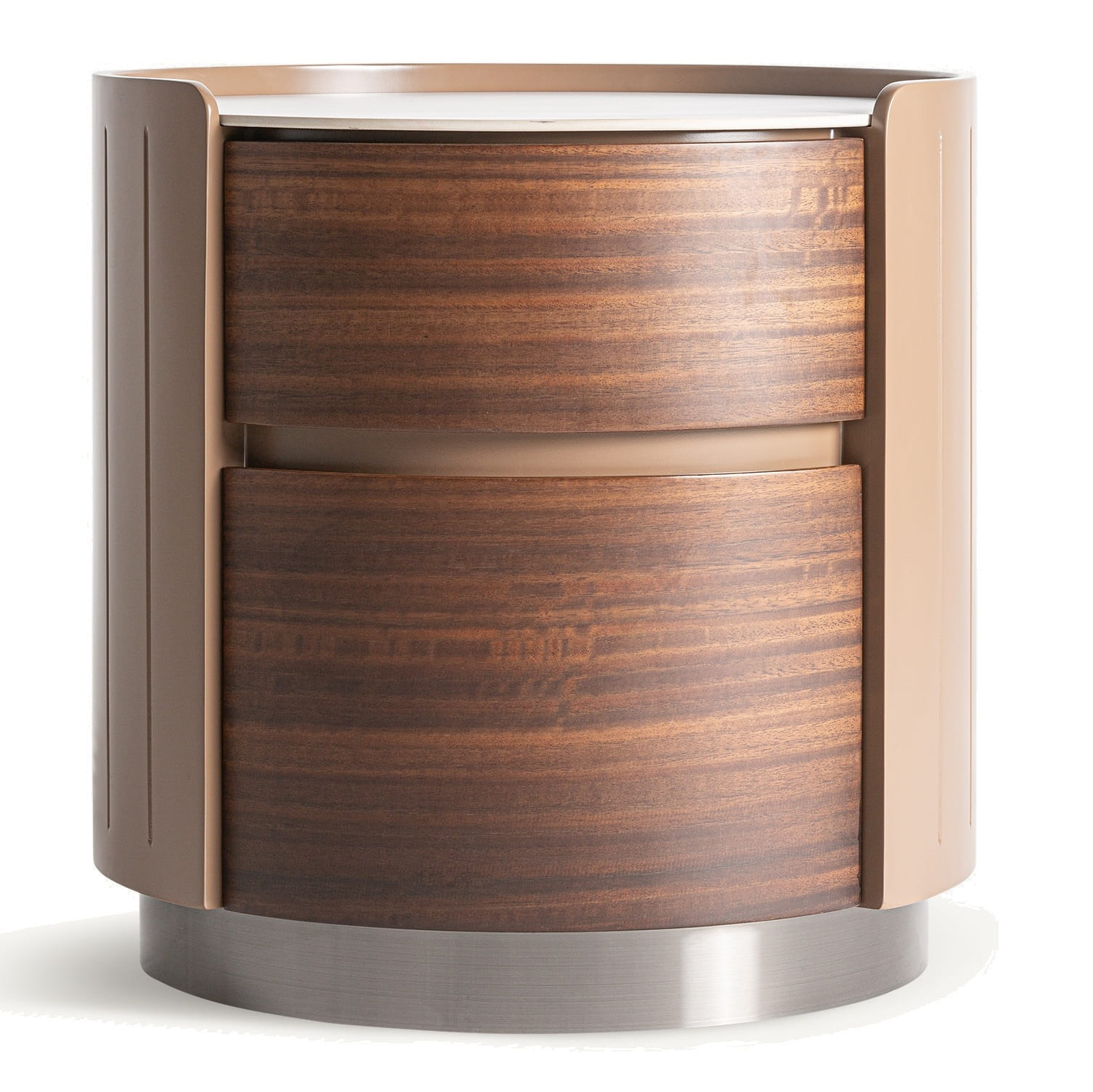 - okrągła szafka nocna z dwiema szufladami