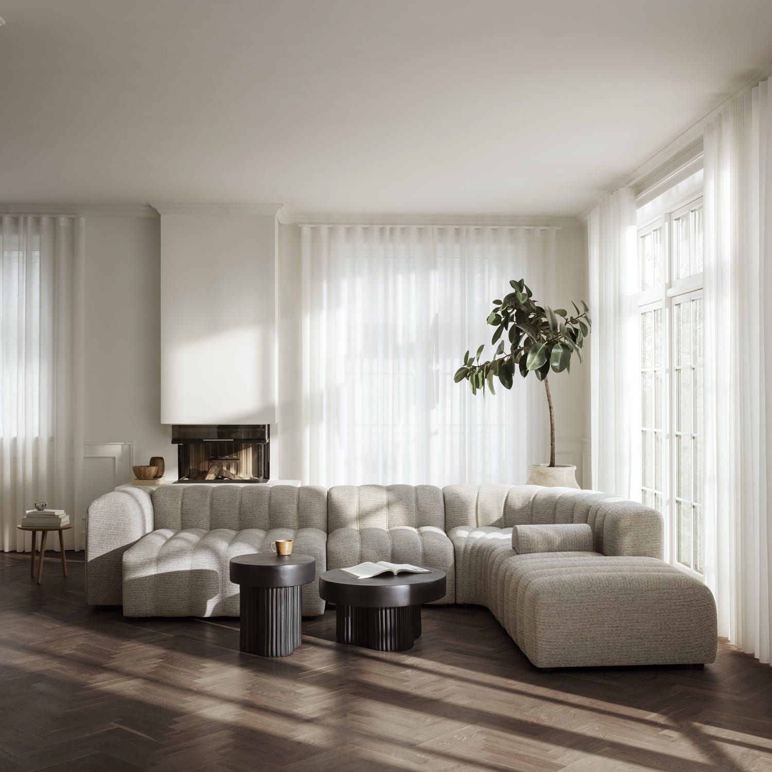 Ekskluzywny stolik Gear został zaprojektowany jako część kolekcji Gear, inspirowanej brutalizmem i rzeźbiarskim podejściem do formy. Można zestawić go z niższym stolikiem Gear Low, tworząc spójną, architektoniczną kompozycję w salonie. Kolekcja sprawdza się zarówno w przestrzeniach prywatnych, jak i komercyjnych.