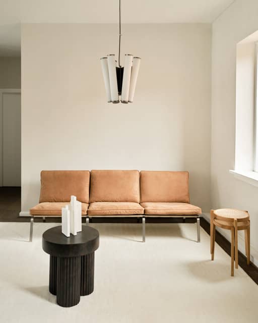 Jego wysokość i kompaktowa średnica pozwalają ustawić go blisko mebli wypoczynkowych, bez zabierania przestrzeni.