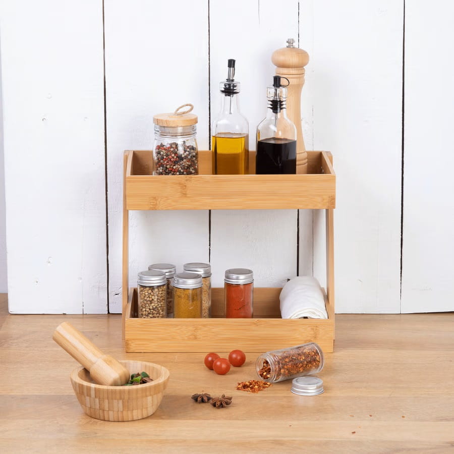 Zalety dwupoziomowego organizera z bambusa