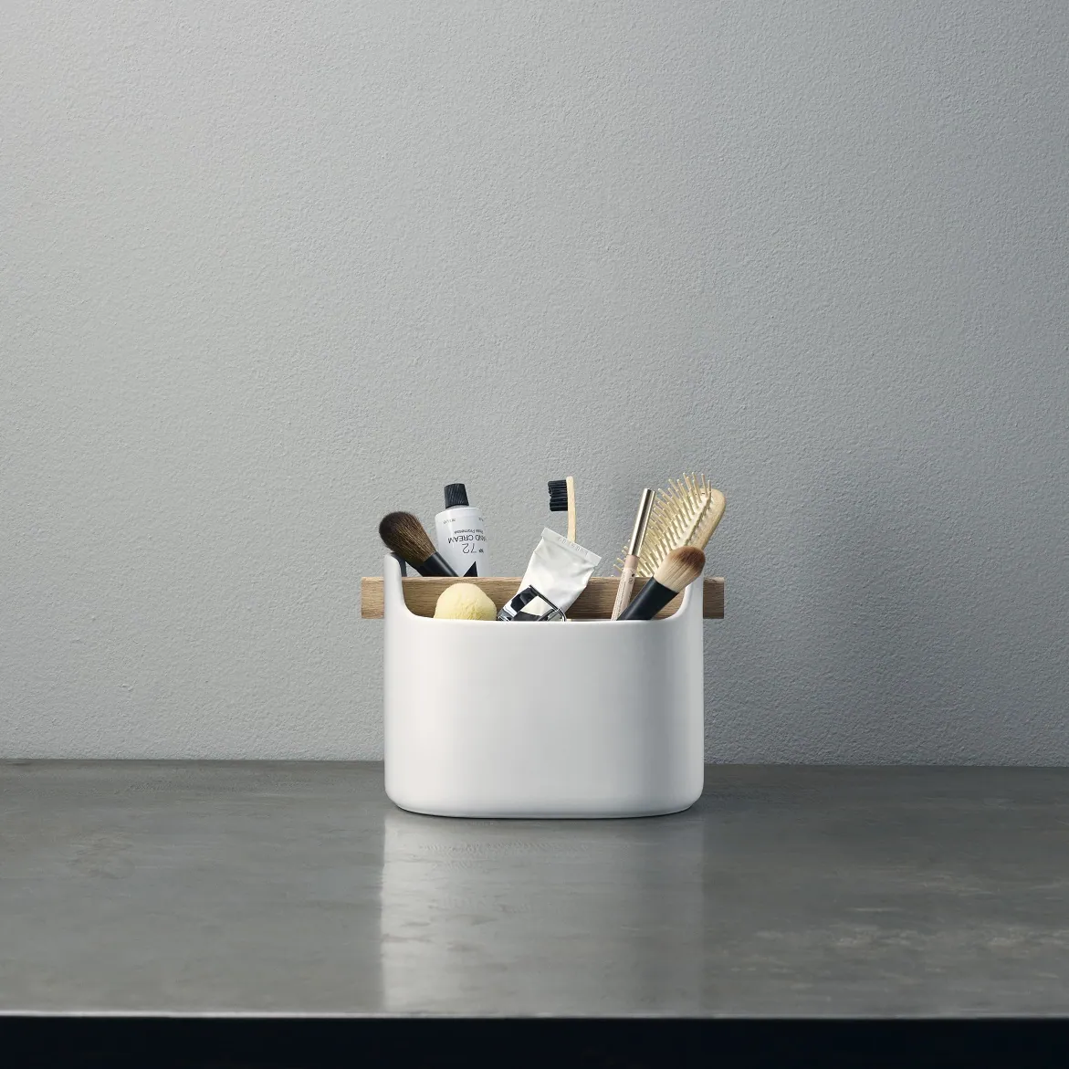 Organizer Eva Solo z powodzeniem sprawdzi się jako pojemnik do łazienki, w którym w uporządkowany sposób można przechowywać kosmetyki, akcesoria do włosów, szczotki i grzebienie lub akcesoria do makijażu.