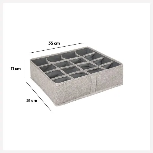 Wykonany z trwałych materiałów, takich jak poliester i polipropylen (PP), organizer skutecznie pomaga w segregacji bielizny i skarpetek oraz w utrzymaniu porządku w drobnych elementach garderoby.