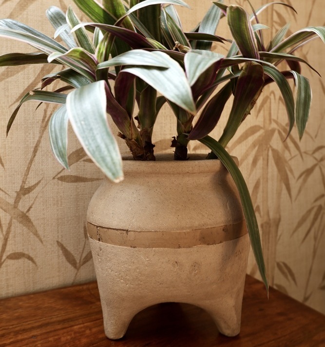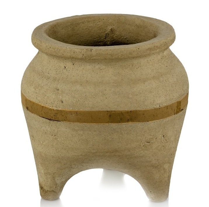 Osłonka na doniczkę na nóżkach Ø 21 cm / H 21 cm – ceramiczna forma inspirowana rzemiosłem to ręcznie wykonana osłonka doniczkowa z ceramiki nieszkliwionej o matowym wykończeniu, zaprojektowana do wnętrz, w których detal buduje charakter przestrzeni. Jeżeli szukasz ceramicznej osłonki na nóżkach do salonu lub strefy relaksu, sypialni, która jednocześnie eksponuje roślinę i sama w sobie stanowi dekorację, ten model łączy etniczną inspirację z nowoczesną, rustykalną prostotą formy. Trzy stabilne nóżki unoszą bryłę nad podłożem, nadając jej lekkość i rzeźbiarski wyraz.