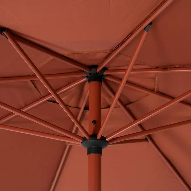 Dzięki okrągłemu baldachimowi solidnie zamocowanemu na końcach żeber, parasol Hesperide zapewnia stabilność i skuteczną osłonę przed promieniowaniem UV. Parasol wyposażono w praktyczny system otwierania za pomocą korby, co pozwala na szybkie i wygodne rozłożenie konstrukcji bez większego wysiłku. Praktyczne zapięcie motylkowe sprawia, że jego zamykanie jest szybkie i wygodne, co ułatwia codzienne użytkowanie.