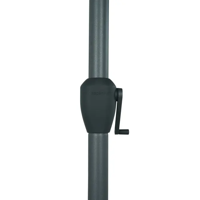 Parasol wyposażono w praktyczny system otwierania za pomocą korby, co pozwala na szybkie i wygodne rozłożenie konstrukcji bez większego wysiłku.