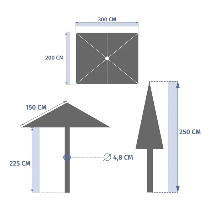 Nowoczesny, prostokątny kształt i elegancka kolorystyka nadają parasolowi uniwersalnego charakteru, który doskonale wpisuje się w każdą aranżację ogrodową.