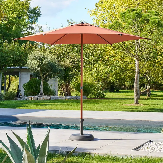 W słoneczne dni, zrelaksuj się w cieniu okrągłego parasola ogrodowego Hesperide z kolekcji Soya. To nie tylko praktyczny i solidny dodatek do ogrodu czy tarasu, ale także elegancki element, który wprowadzi odrobinę stylu do przestrzeni na świeżym powietrzu. Materiał pokrowca jest wodoodporny co zapobiega wnikaniu wody w tkaninę.