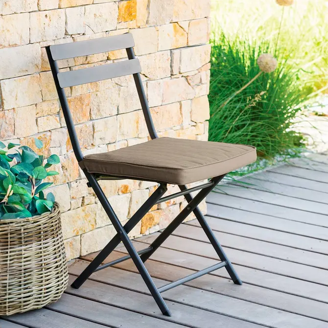 Standardowy wymiar 40 x 40 cm sprawia, że model Korai pasuje do większości krzeseł tarasowych i balkonowych.