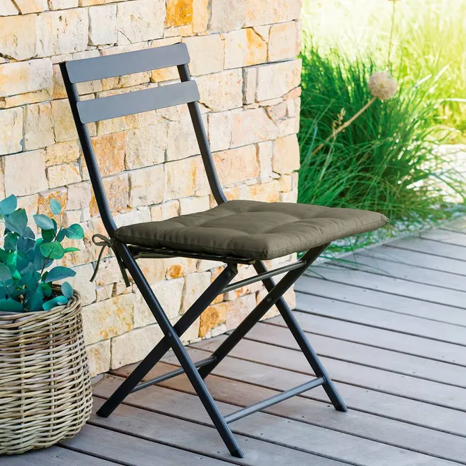 Poduszka ogrodowa na krzesło, pikowana Korai Hesperide, w typowym rozmiarze 40 x 40 cm, to idealne rozwiązanie, aby dodać miękkości i wygody Twoim krzesłom ogrodowym lub krzesłom balkonowym.