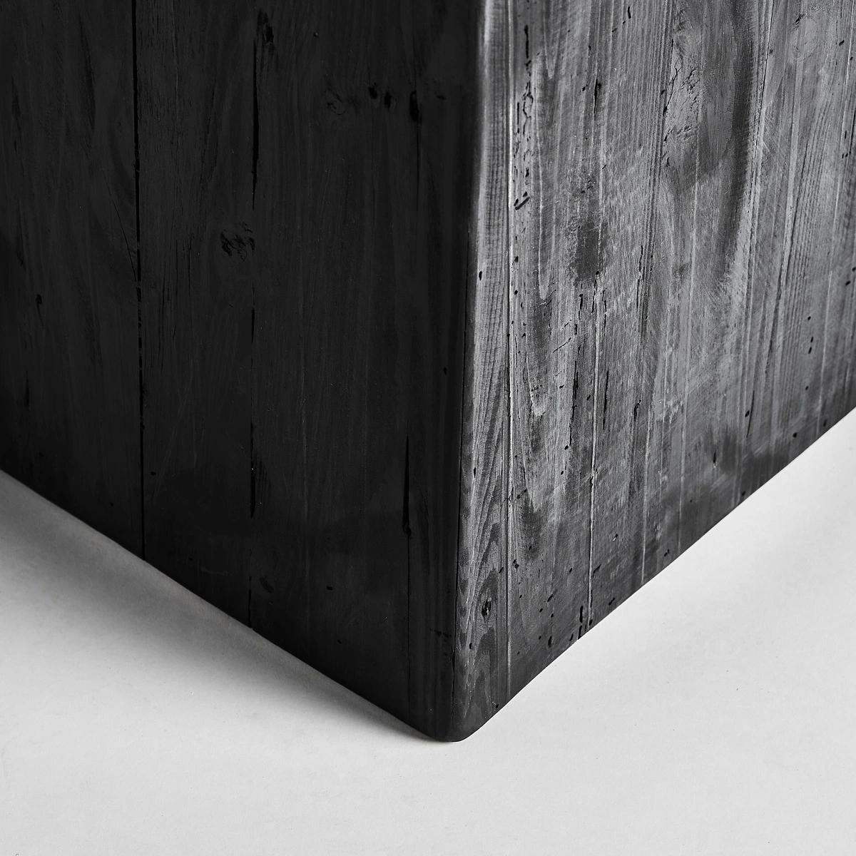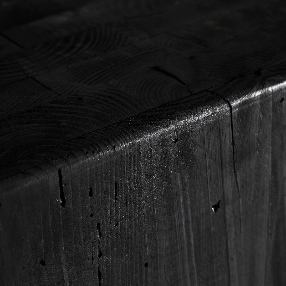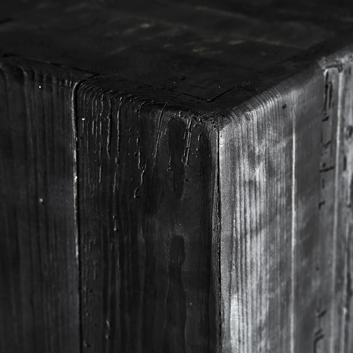 Drewniany postument dekoracyjny czarny, na ekspozycję wazonów i doniczek, na lampy i dekoracje, Vievy od Vical to esencja minimalistycznej elegancji i ponadczasowej formy. Wykonany z recyklingowanego drewna sosnowego w głębokim odcieniu czerni, urzeka swoją minimalistyczną prostotą podkreślając eksponowany przedmiot.