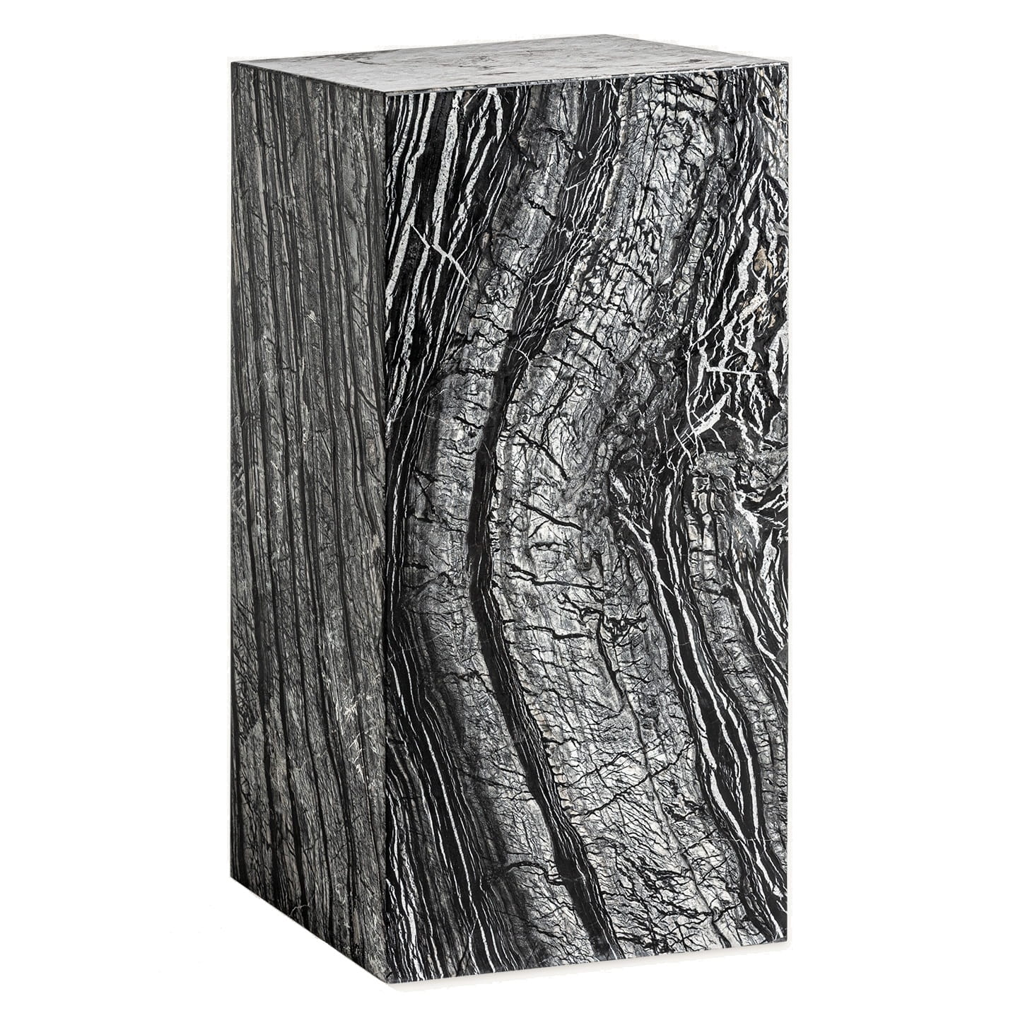Postument Chaintre opiera się na prostej, zwartej bryle cylindra, dzięki czemu pełni rolę spokojnego tła dla eksponowanego obiektu. Brak zbędnych detali pozwala skupić uwagę na proporcjach i naturalnym rysunku marmuru. To forma, która dobrze wygląda zarówno solo, jak i w zestawieniu z innymi elementami kamiennymi lub drewnianymi.