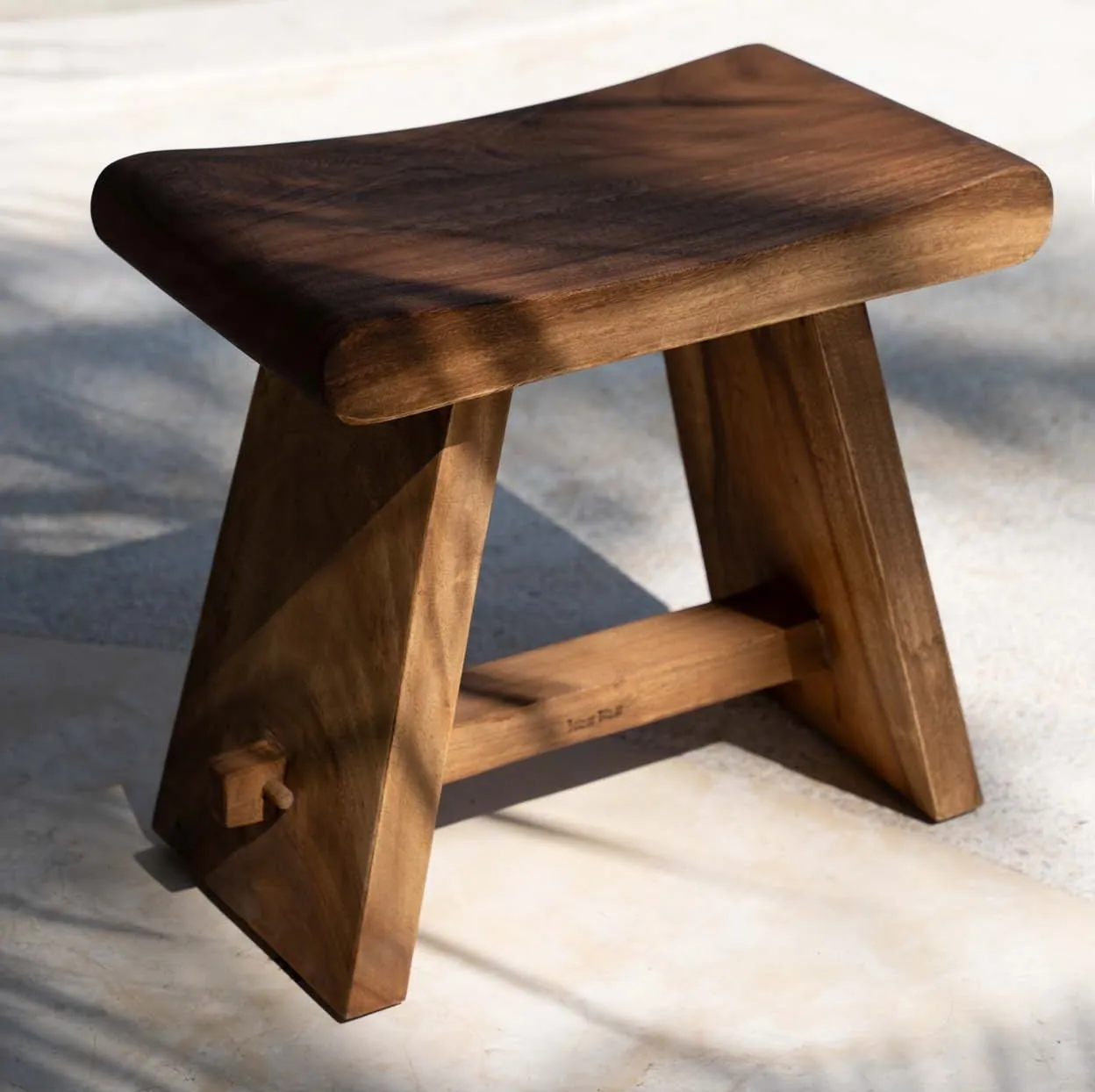 Profilowany stołek z drewna suar - BAZAR BIZAR