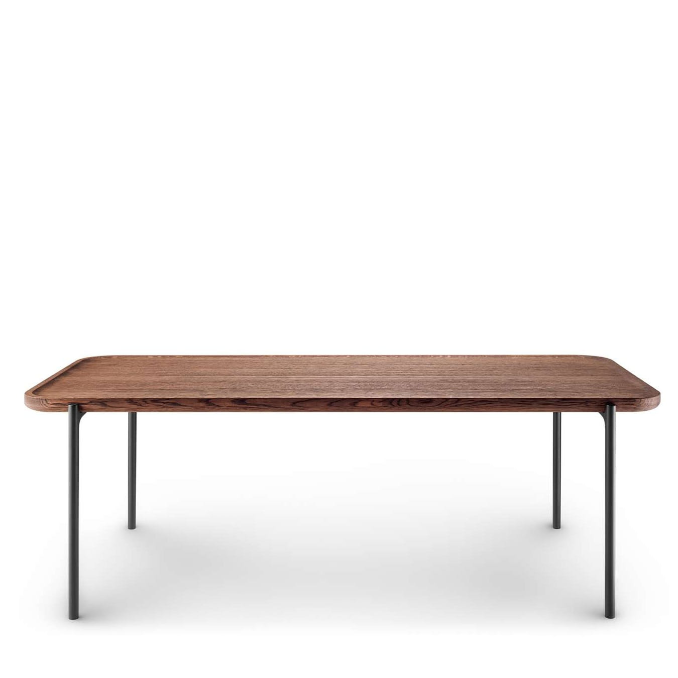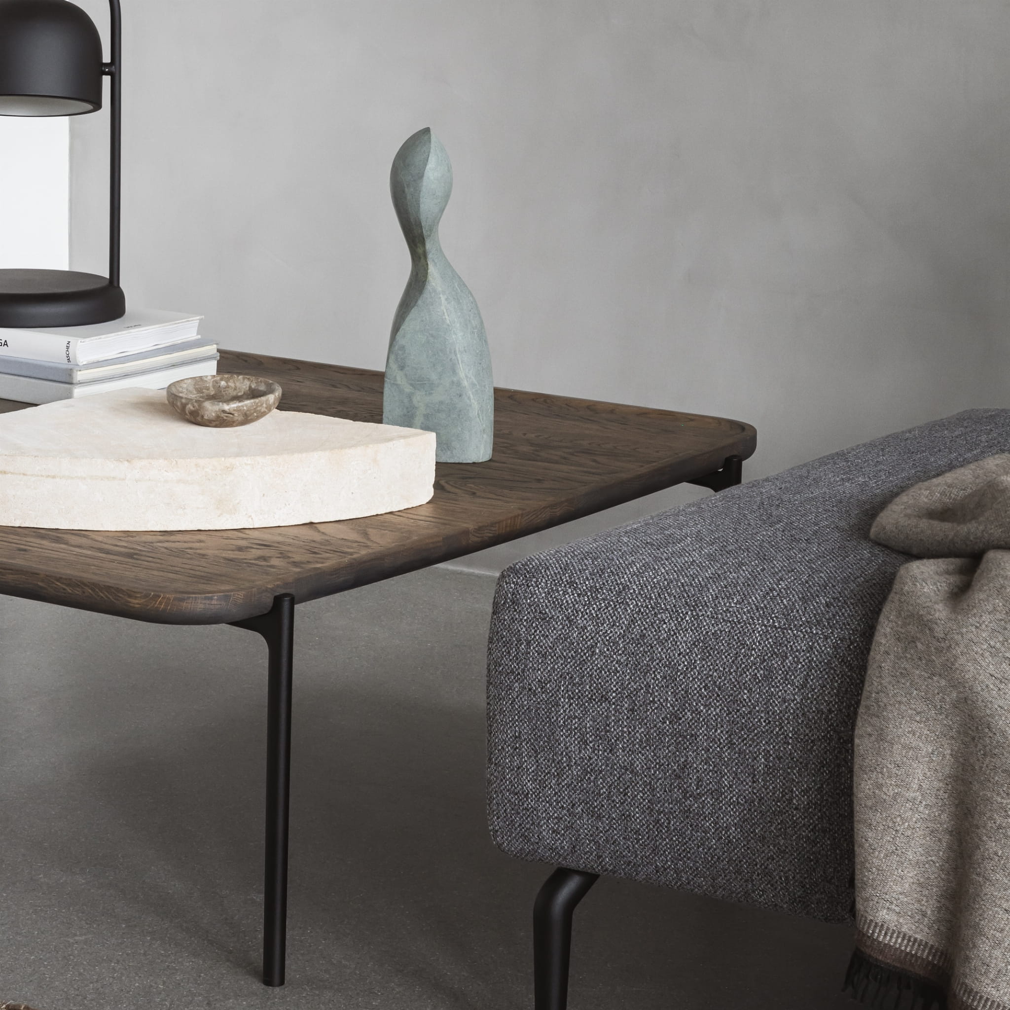 Wykonany z litego dębu i olejowany dla podkreślenia naturalnej struktury drewna, blat stolika łączy trwałość, ciepło i wyrafinowany styl. Emanująca subtelną lekkością, malowana proszkowo aluminiowa podstawa zapewnia stabilność bez utraty lekkości wizualnej, a gładki blat z olejowanego dębu zachwyca subtelnym blaskiem drewna i szlachetnym rysunkiem słojów.