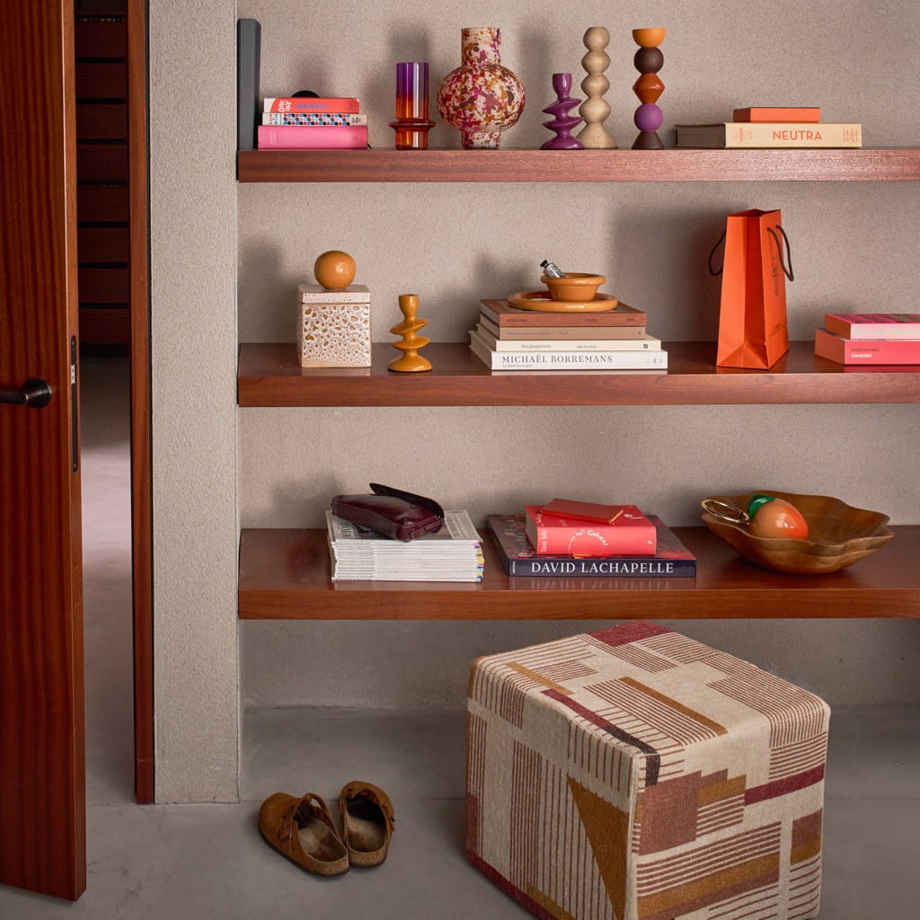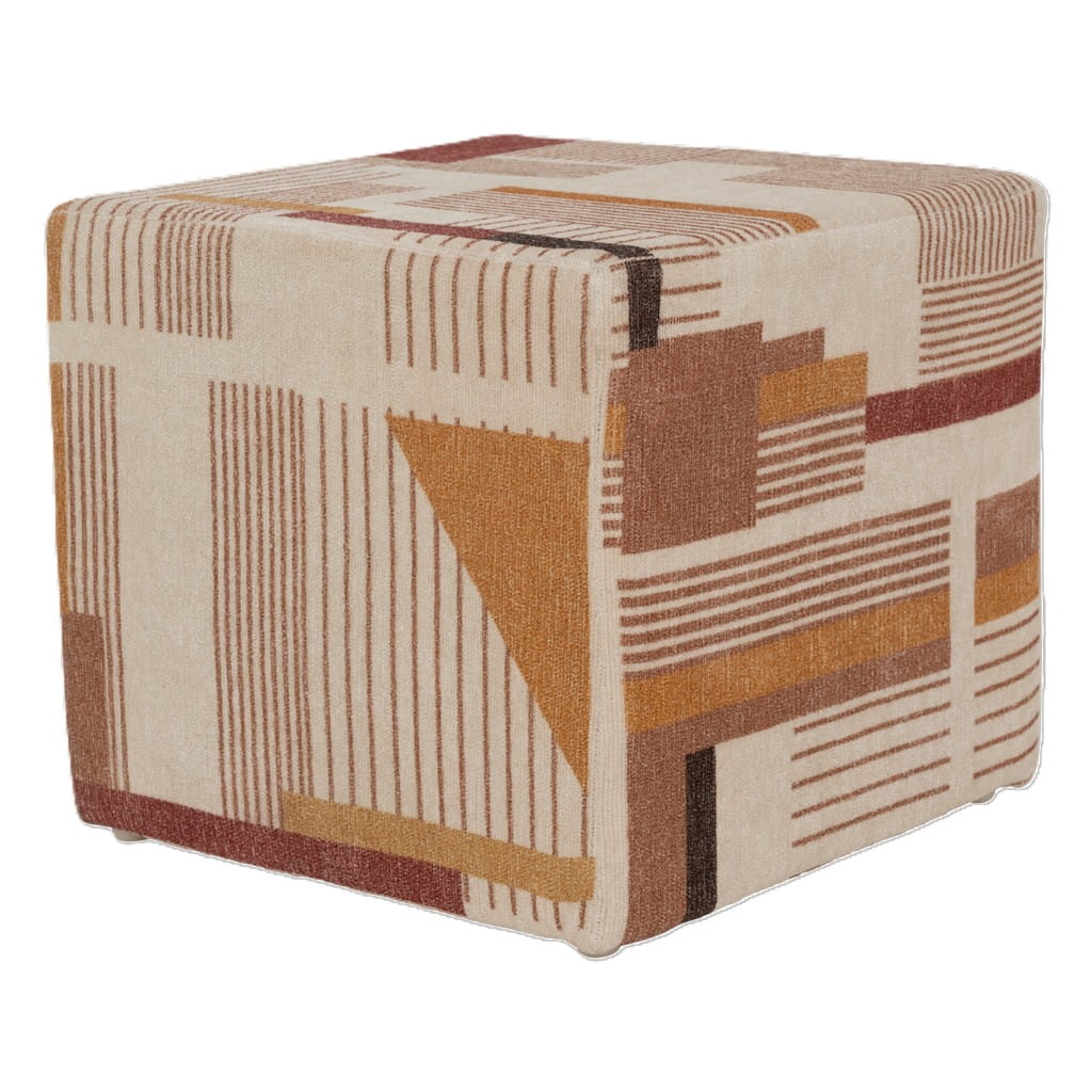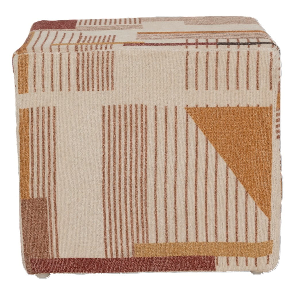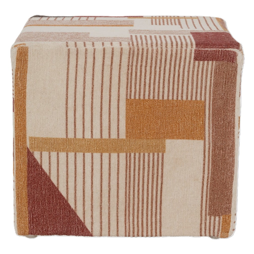 Kolorystyka pufy Lille to starannie dobrana paleta ziemistych barw – czerwień, pomarańcz, beż i piasek przenikają się w miękkiej tkaninie, tworząc wzór, który przyciąga wzrok i wprowadza do wnętrza pozytywną energię. Kwadratowy kształt pufy oraz miękka, przyjemna w dotyku powierzchnia sprawiają, że jest idealnym połączeniem nowoczesnego designu i funkcjonalności.