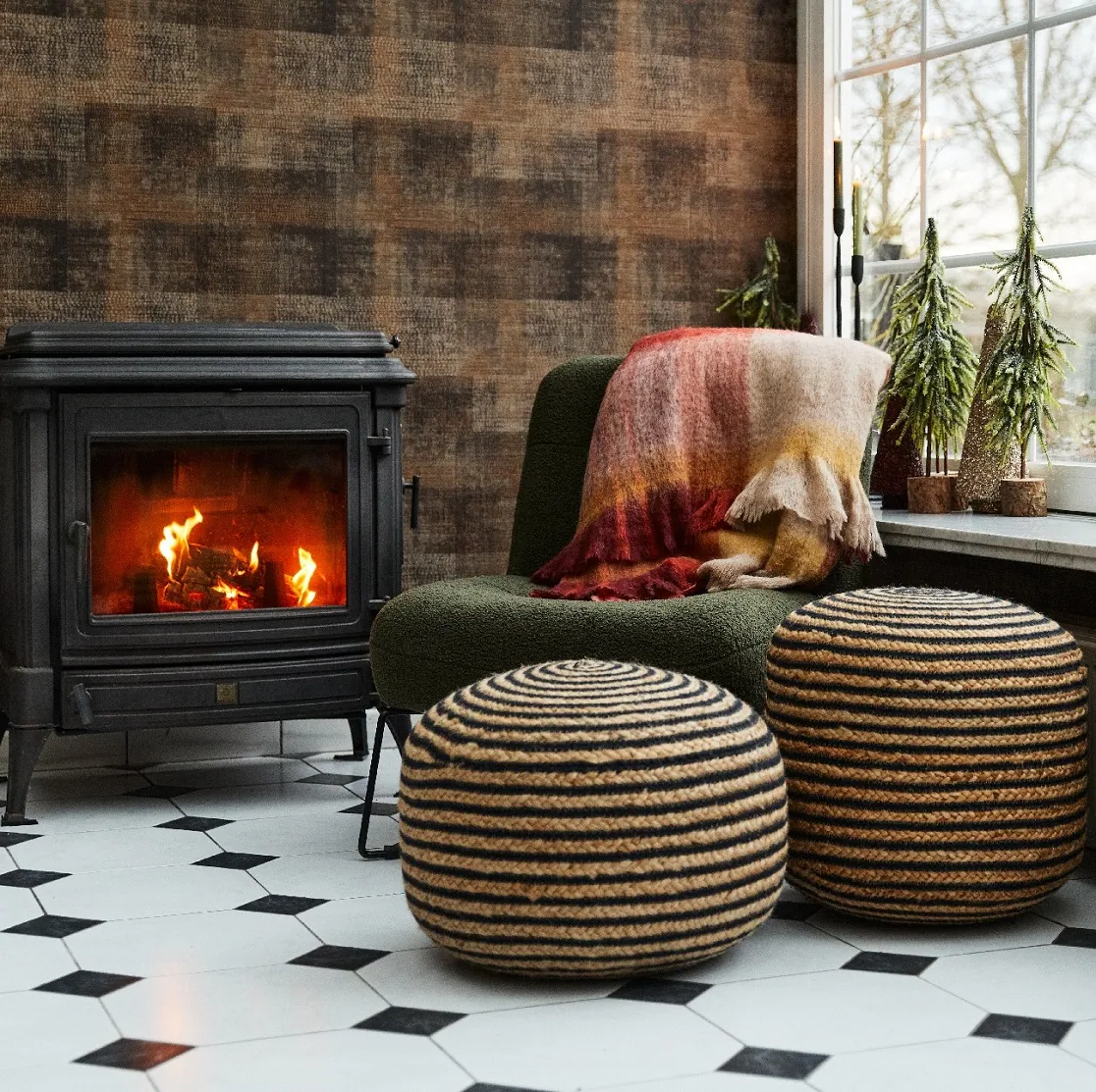 Pufa jutowa świetnie komponuje się z wnętrzami w stylu naturalnym, skandynawskim, boho, Modern Rustic, Modern Farm House lub eko.