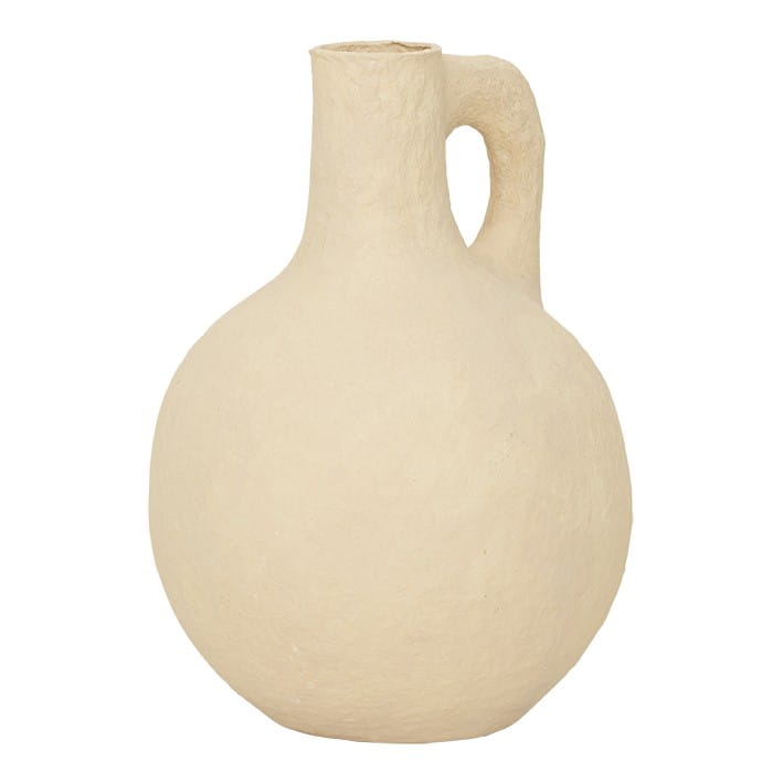 Marka Urban Nature Culture słynie z innowacyjnego podejścia do materiałów, a ręcznie wykonany wazon z cotton mache jest tego najlepszym dowodem. Powstał z odpadów tekstylnych pochodzących z indyjskiego przemysłu odzieżowego, którym rzemieślnicy nadali drugie życie dzięki technice cotton maché. To wyjątkowy przykład odpowiedzialnego designu, który nie rezygnuje ze stylu ani jakości. Każdy wazon powstaje w specjalnie przygotowanej formie, co nadaje mu unikatowy charakter i harmonijną, klasyczną linię wzbogaconą wygodnym uchwytem.