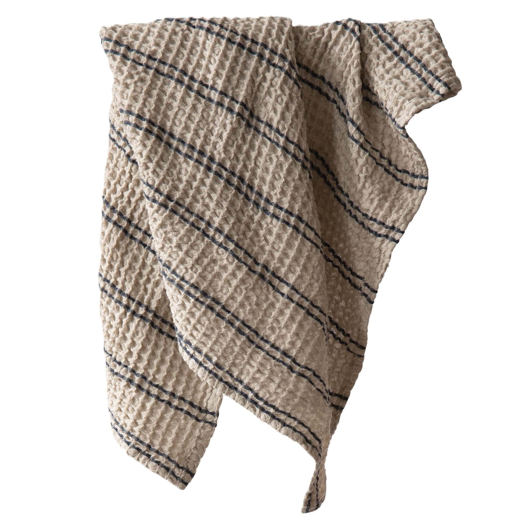 Ręcznik waflowy Nella 50x70 cm bawełna organiczna, beżowy w paski niebieskie - Tell Me More
