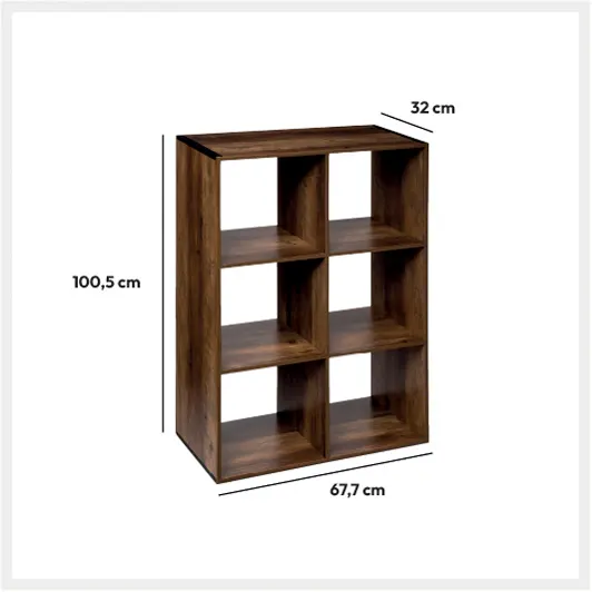 Regał na książki Mix 6-komorowy, efekt ciemnego drewna - 5five