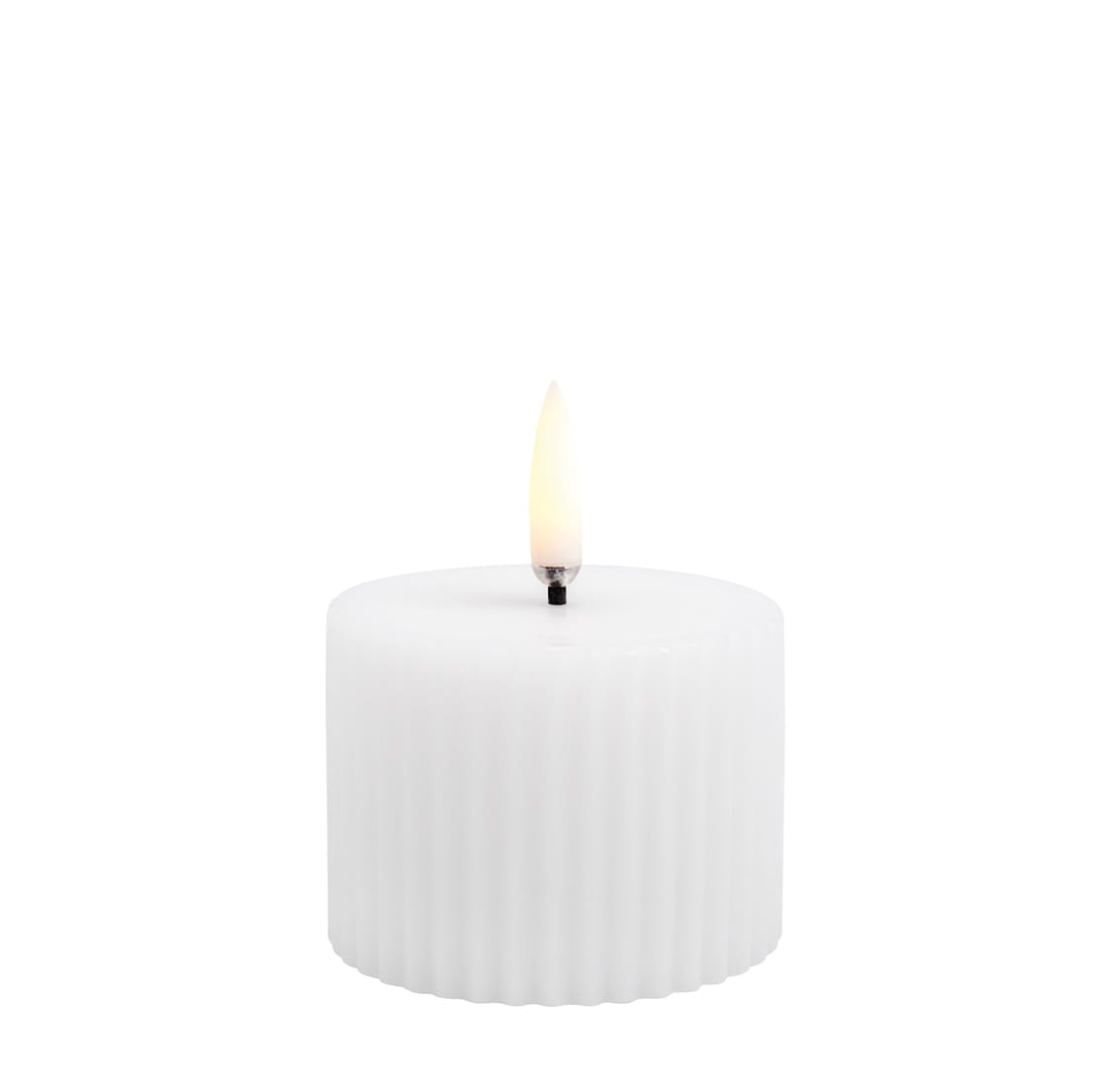 Rowkowana świeca walec 4,5 cm, LED na baterie z ruchomym płomieniem, biel Nordic - Uyuni