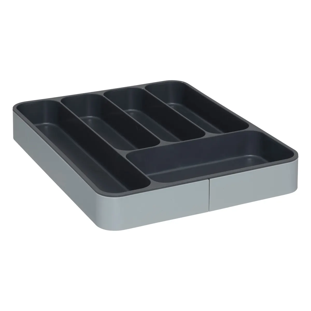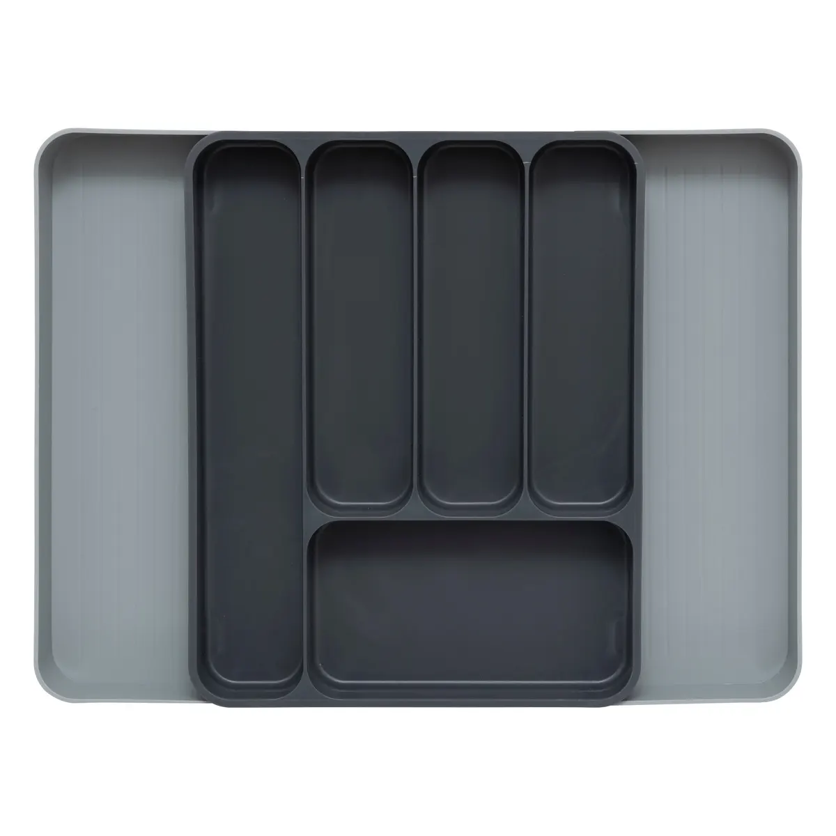 Model ten wyposażony jest w siedem komór przy rozłożeniu, lub pięć komór w wersji złożonej, które zapewniają wygodne rozmieszczenie sztućców, noży oraz przyborów kuchennych. Dzięki funkcji rozsuwania, organizer poszerza się, tworząc dodatkowe przegródki na większe przybory kuchenne lub akcesoria – wszystko w jednym, starannie zaprojektowanym organizerze. To idealne rozwiązanie dla osób ceniących funkcjonalność i dopracowaną organizację przestrzeni.