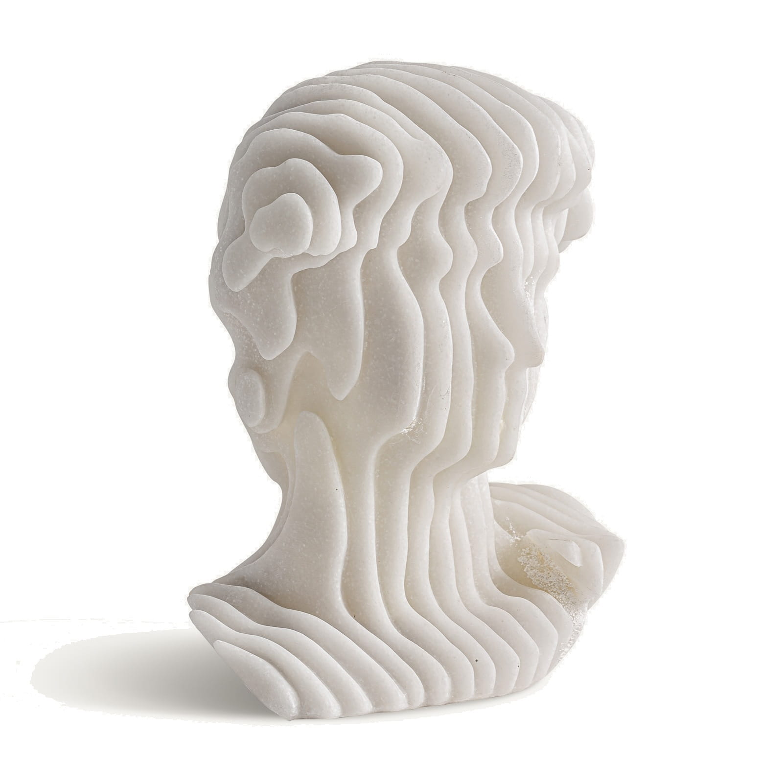 Nicole łączy archetyp popiersia z współczesnym wykończeniem. Miękkie przejścia płaszczyzn i zdecydowany relief nadają rzeźbie głębię, a biała żywica podkreśla światło i cień zamiast koloru. Efekt jest spokojny, ale obecny — rzeźba nie konkuruje z wnętrzem, tylko je stabilizuje.