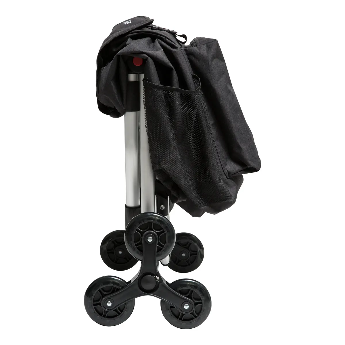 Składany wózek na zakupy z kółkami na schody Nomad 5five to nowoczesne i komfortowe rozwiązanie do codziennych zakupów, idealne dla osób dbających o wygodę i praktyczność. Wyposażony w innowacyjny system sześciu kółek (po trzy na stronie), specjalnie zaprojektowany do łatwego pokonywania schodów, krawężników, wóżek zakupowy Nomad 5five wyróżnia się wśród klasycznych wózków.