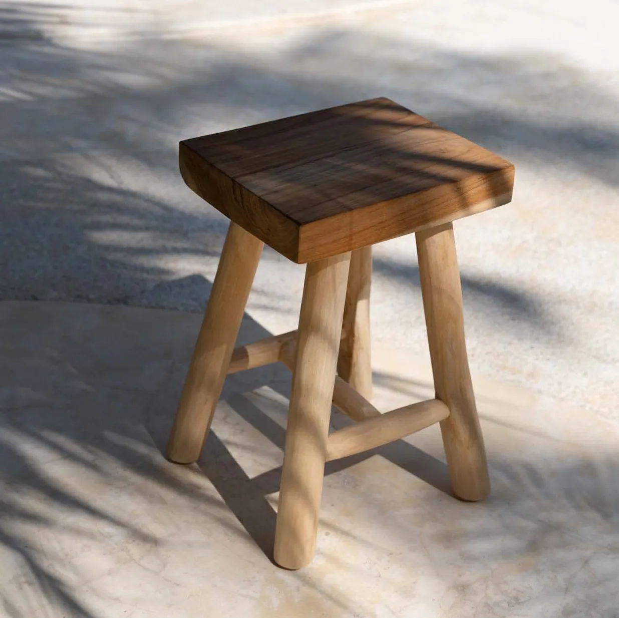 Stołek drewniany Kedri z drewna suar i drewna tekowego - Bazar Bizar