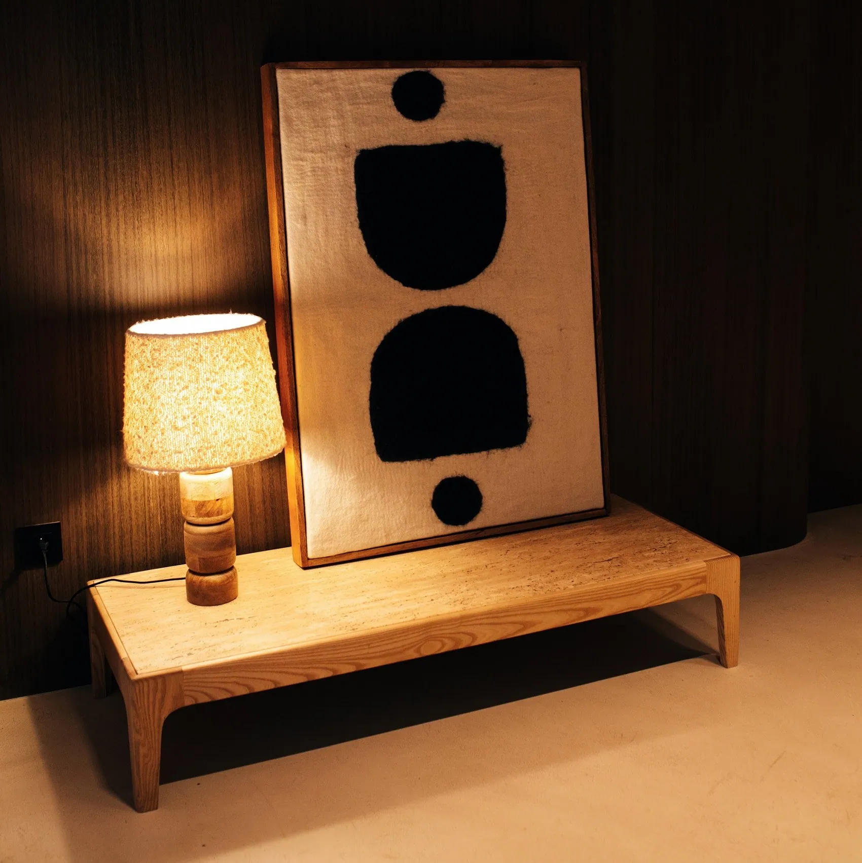 Stolik z trawertynowym blatem może pełnić również rolę stolika bocznego i być ustawiony pod ścianą w salonie w celu wyeksponowania dekoracji, lampy, obrazu lub jako samodzielny obiekt dekorujący wnętrze.