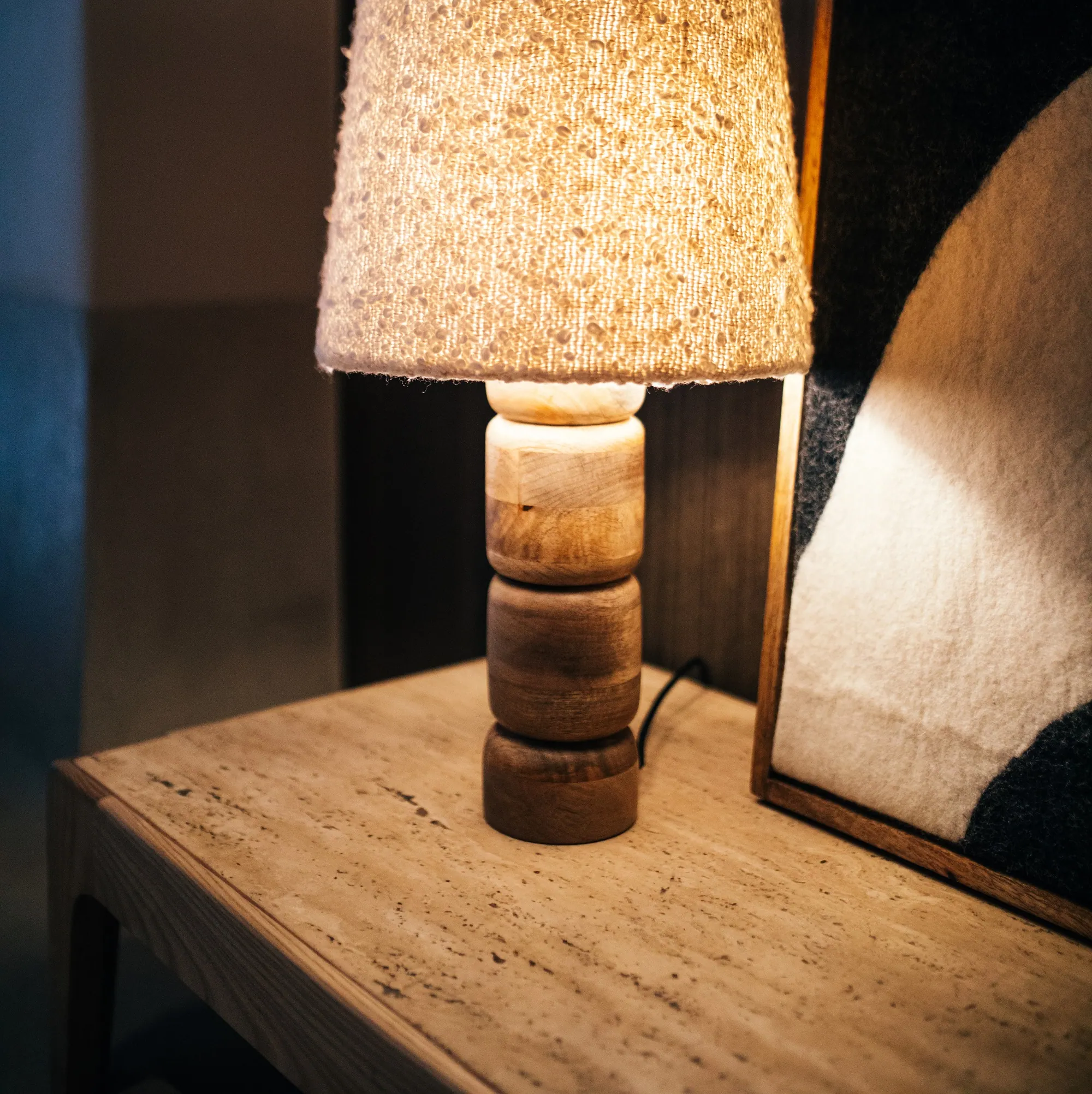 - Materiał: trawertyn, drewno akacjowe